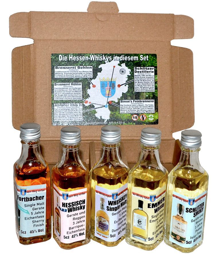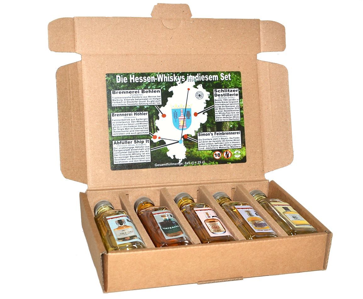 Whisky Tasting Set Hessen, hessische Whiskys, 5x50 ml (25cl)