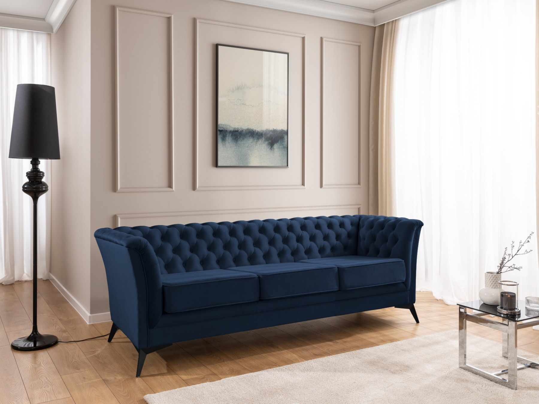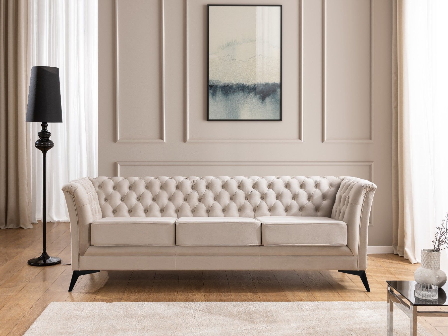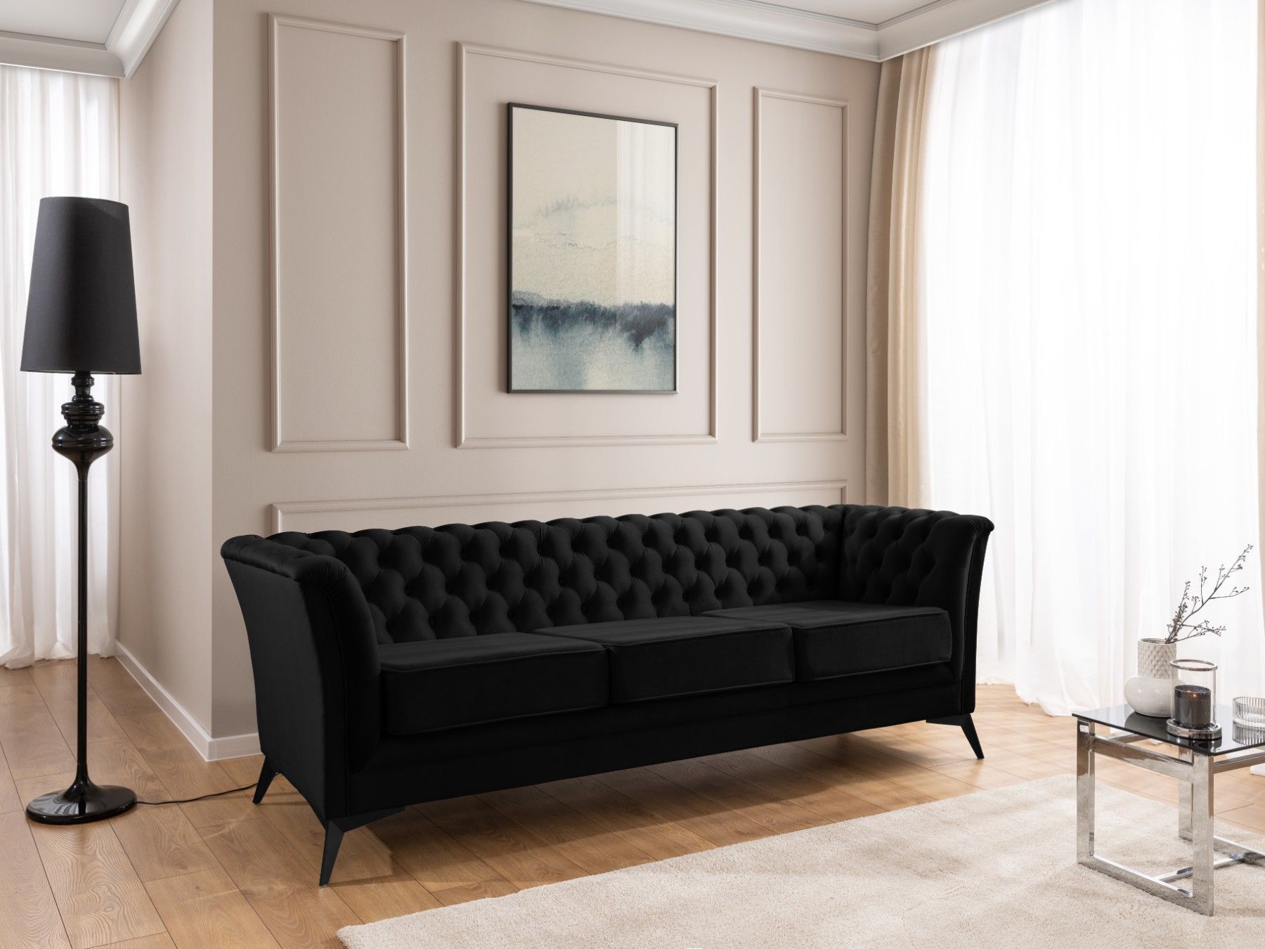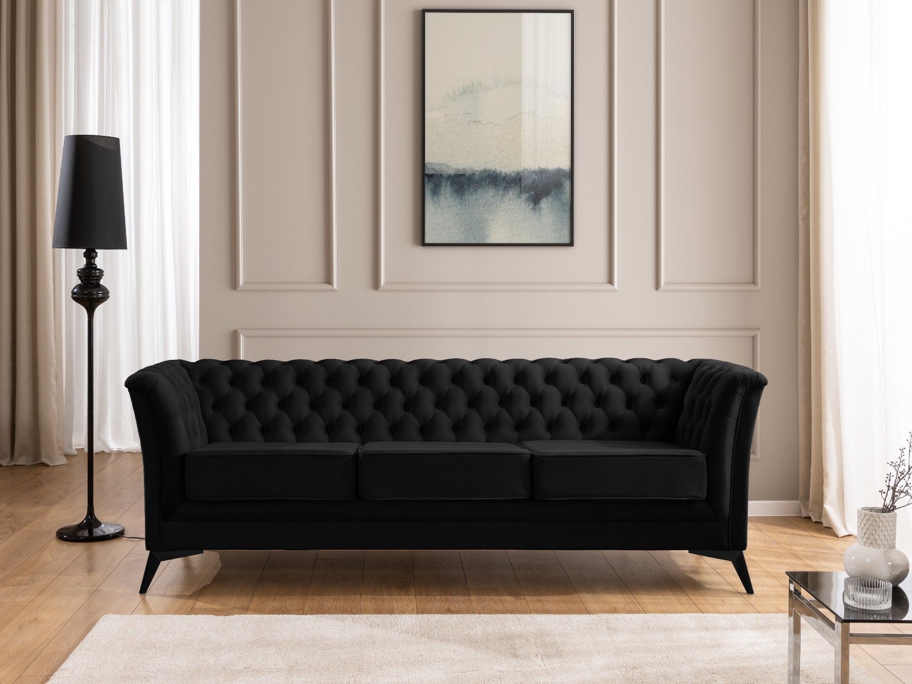 Whitby - Chesterfield Luxus 3-Sitzer Sofa aus Samt mit schwarzen Füßen