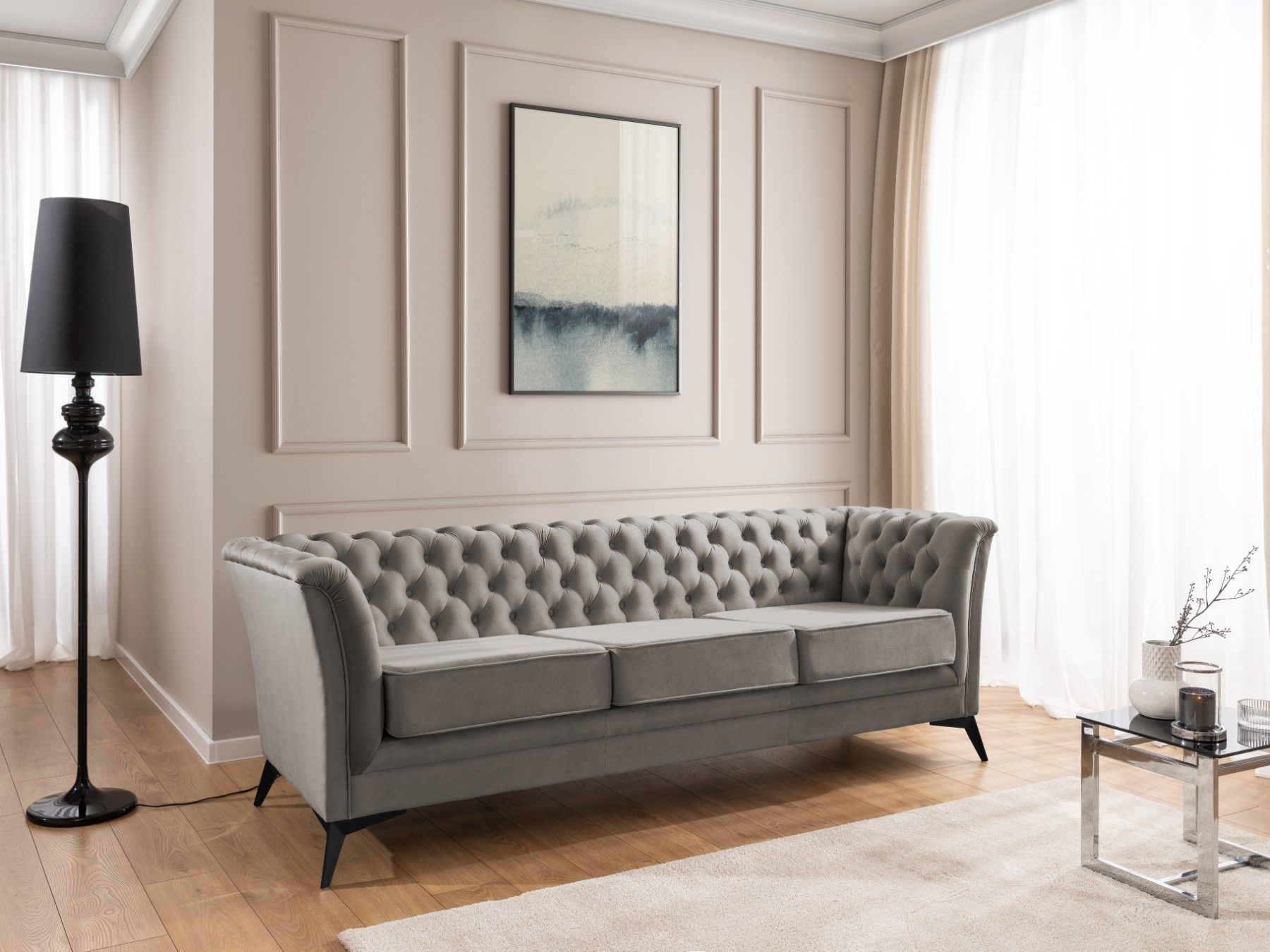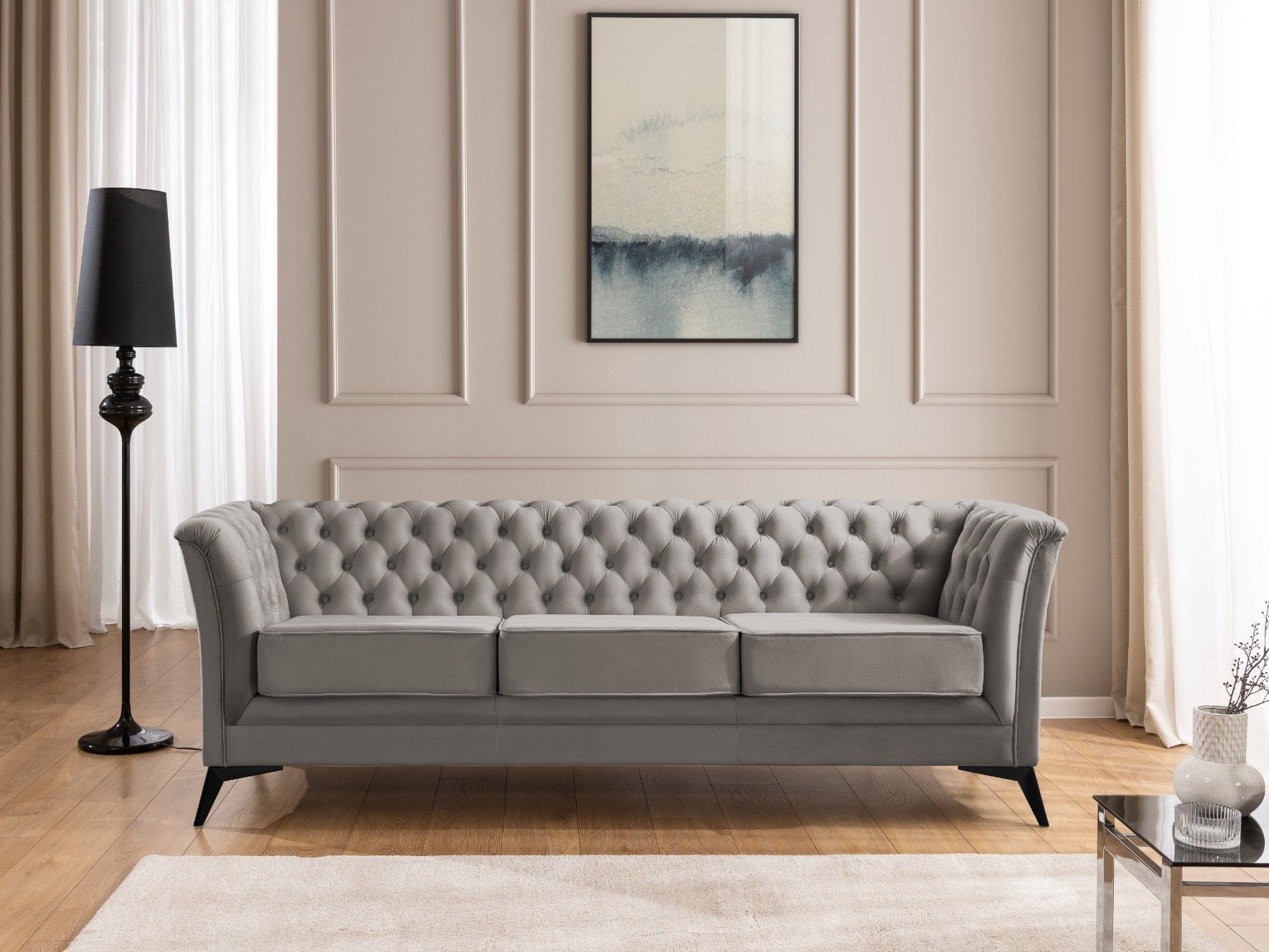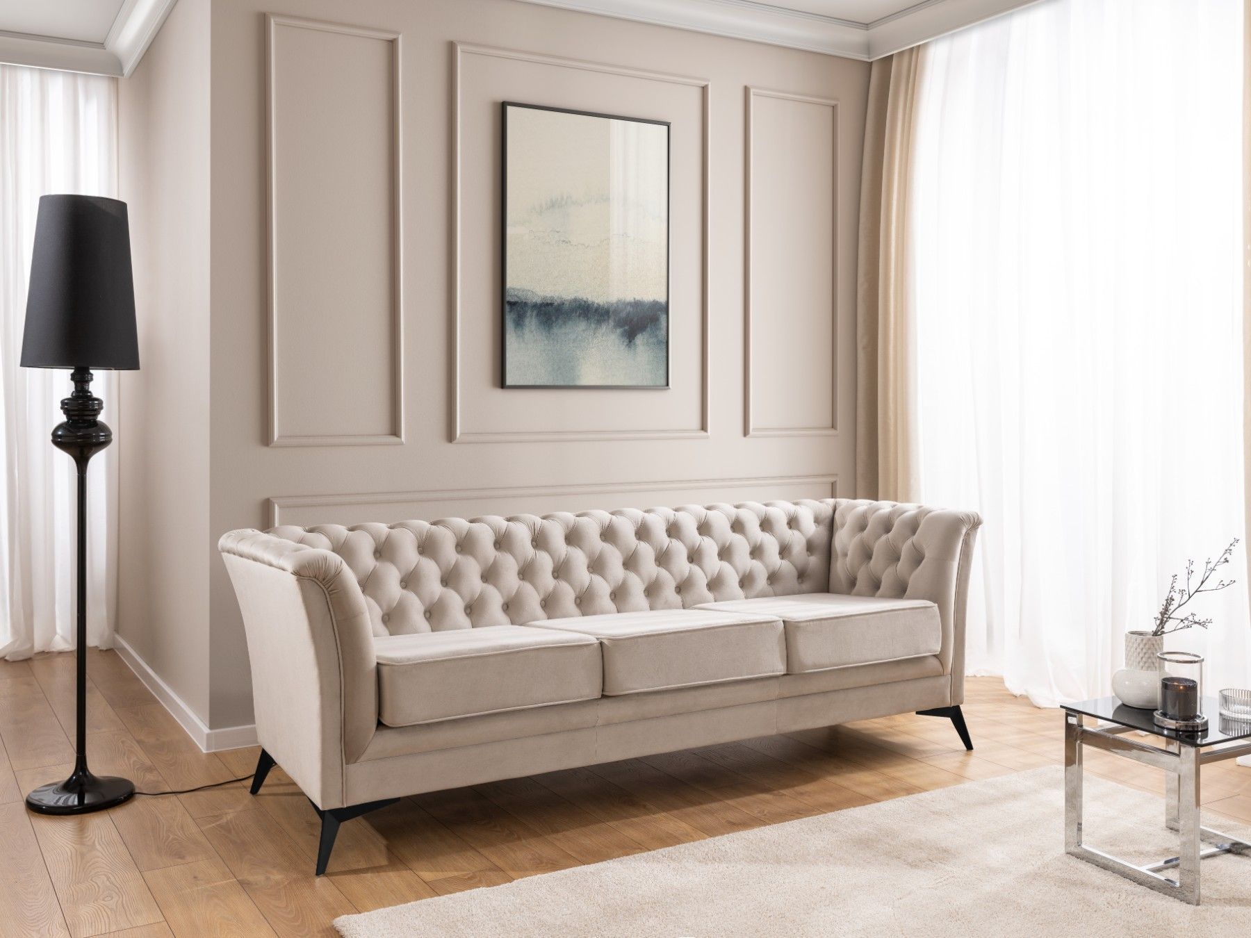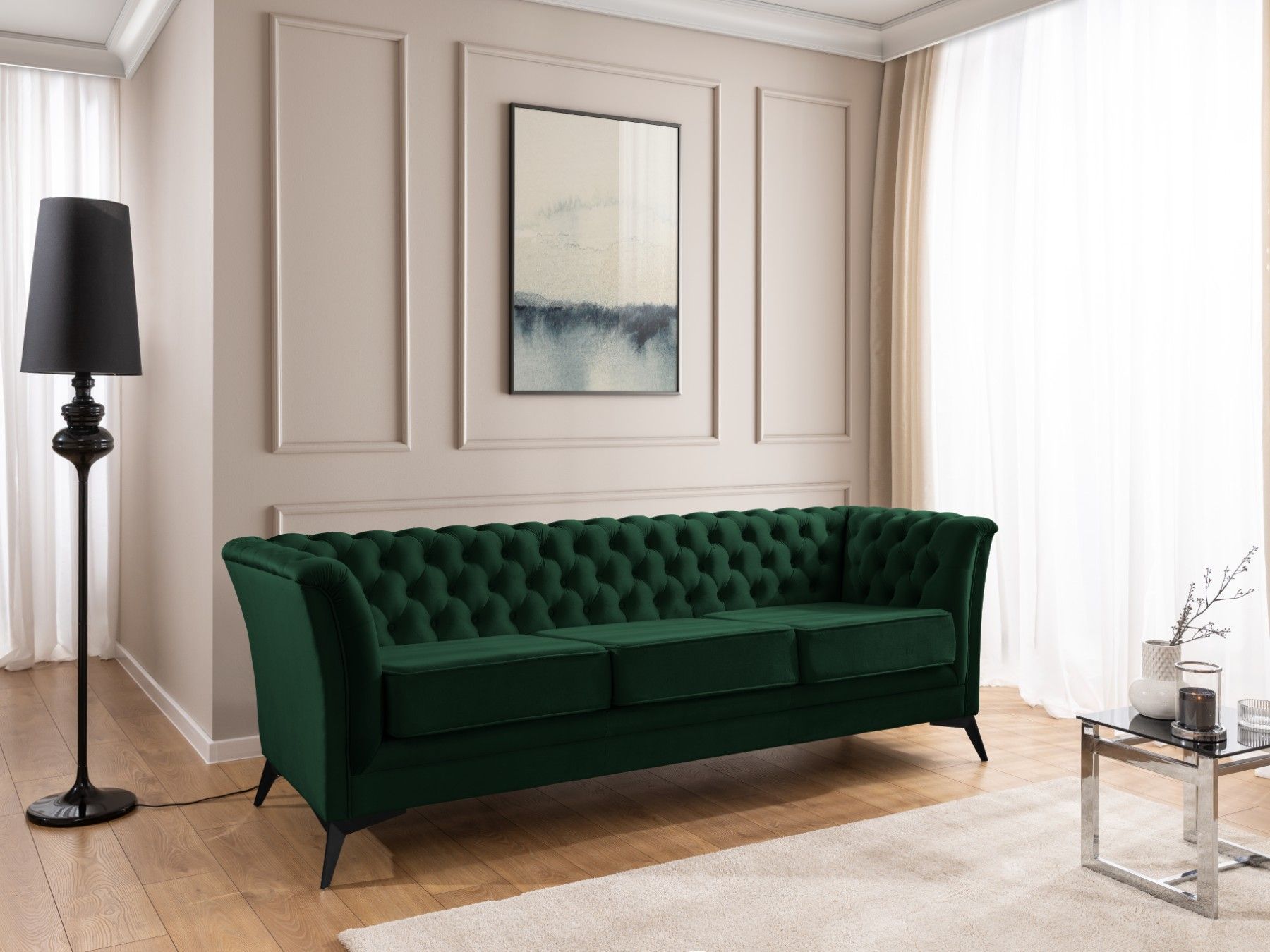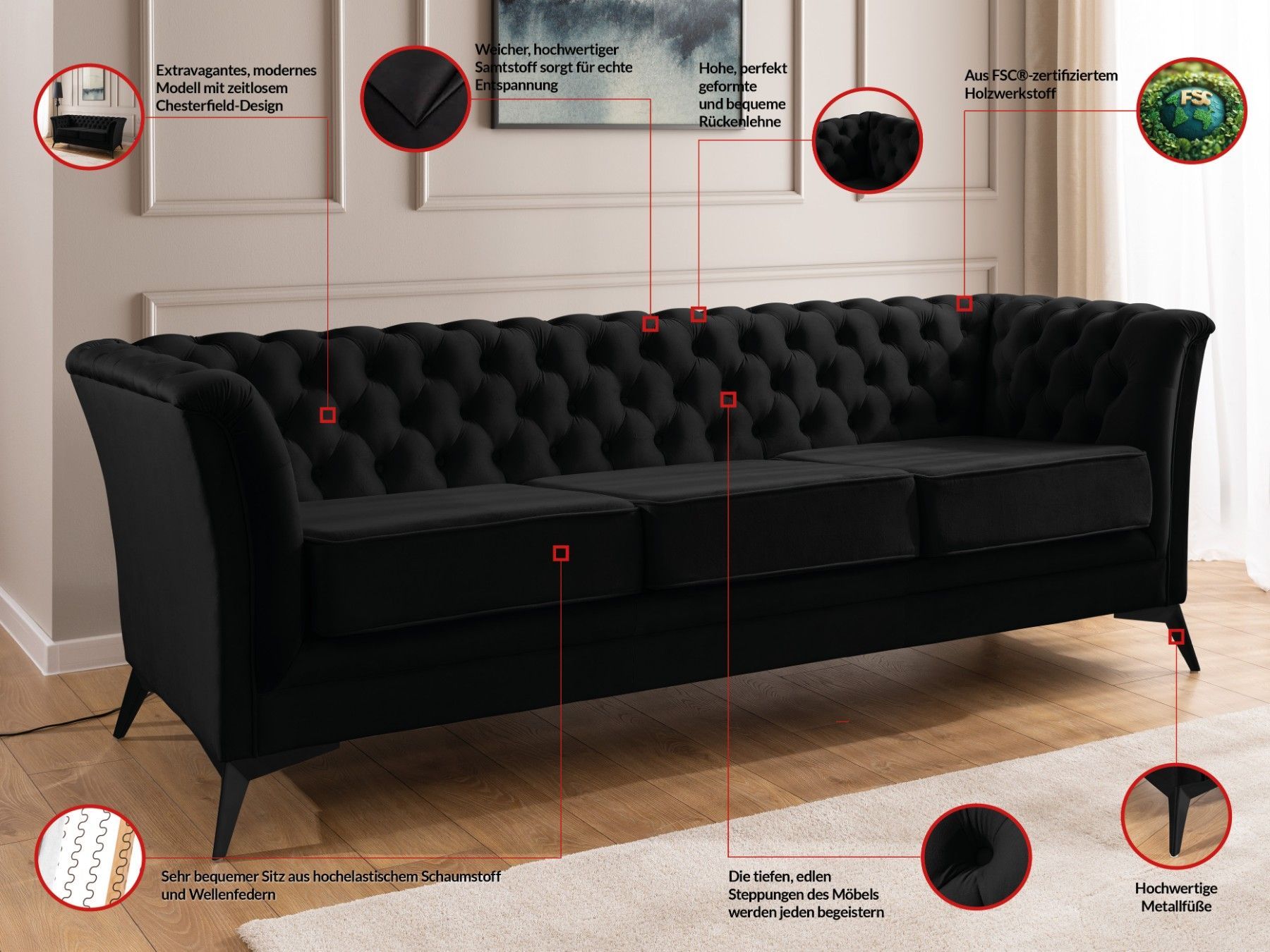 Whitby - Chesterfield Luxus 3-Sitzer Sofa aus Samt mit schwarzen Füßen