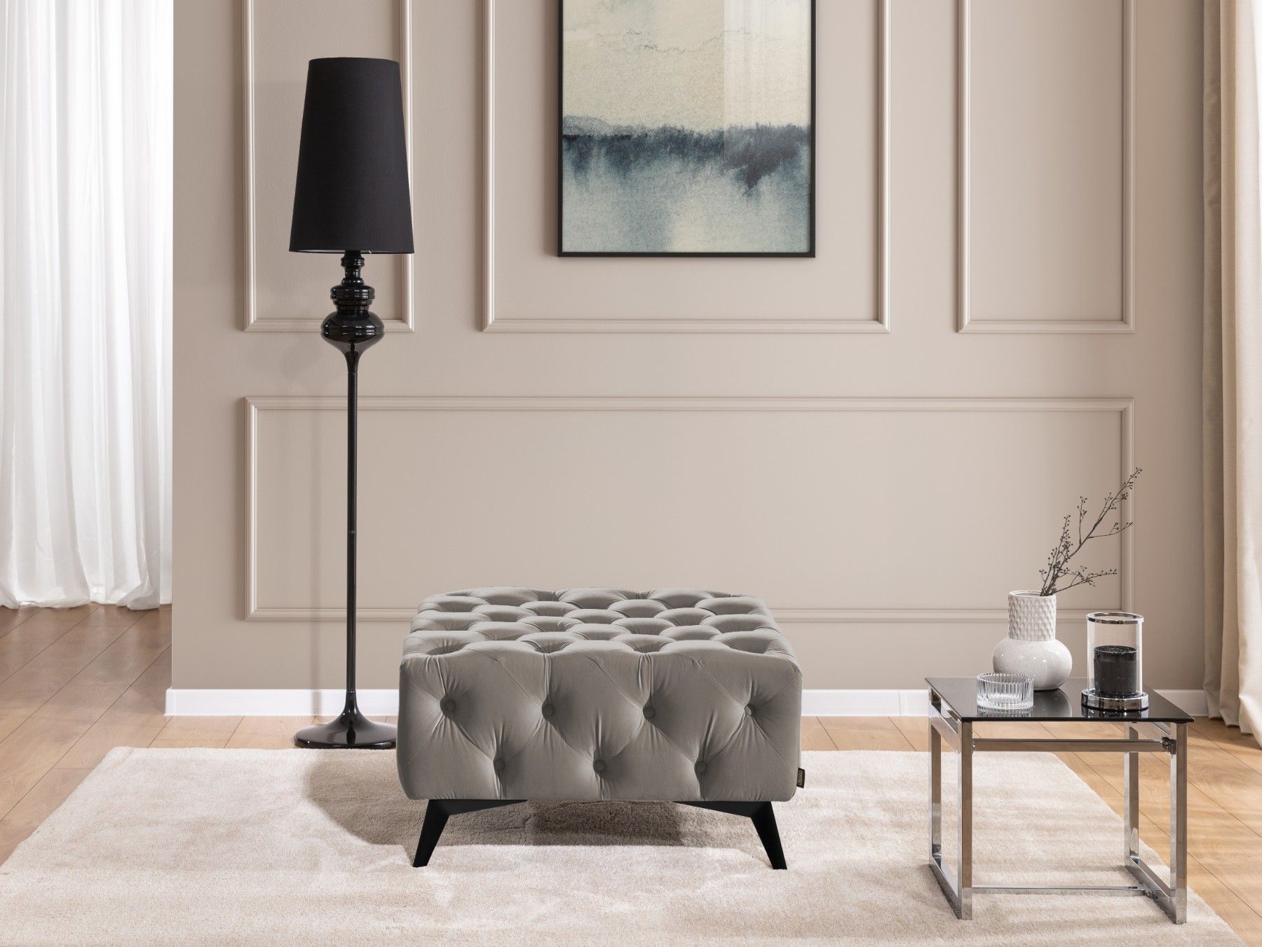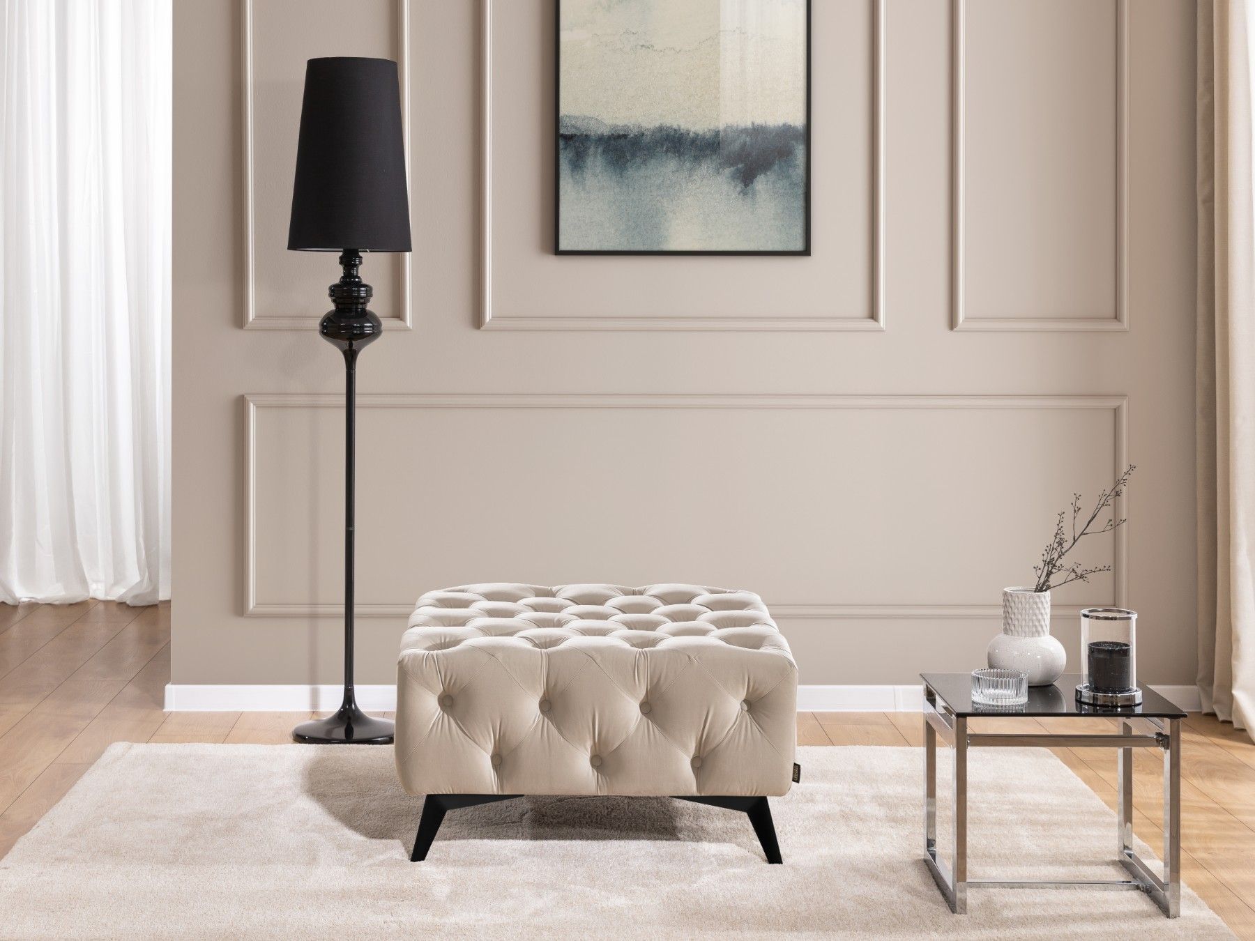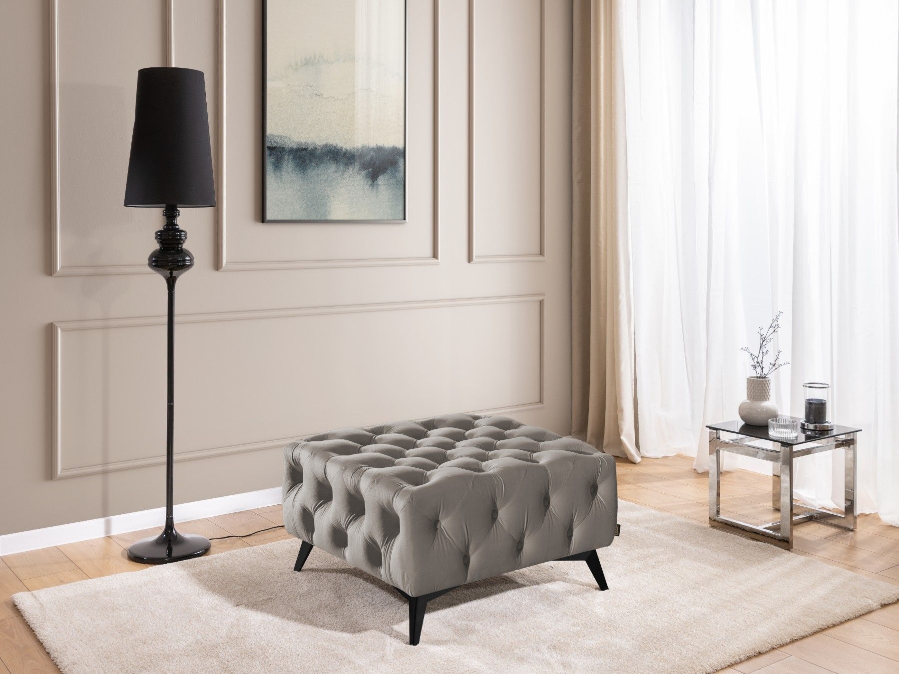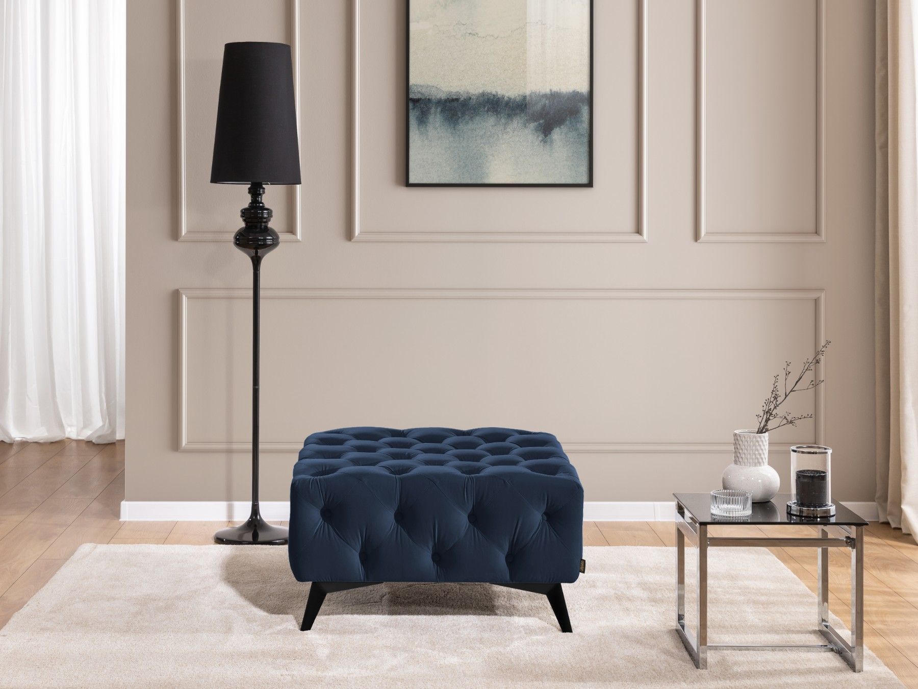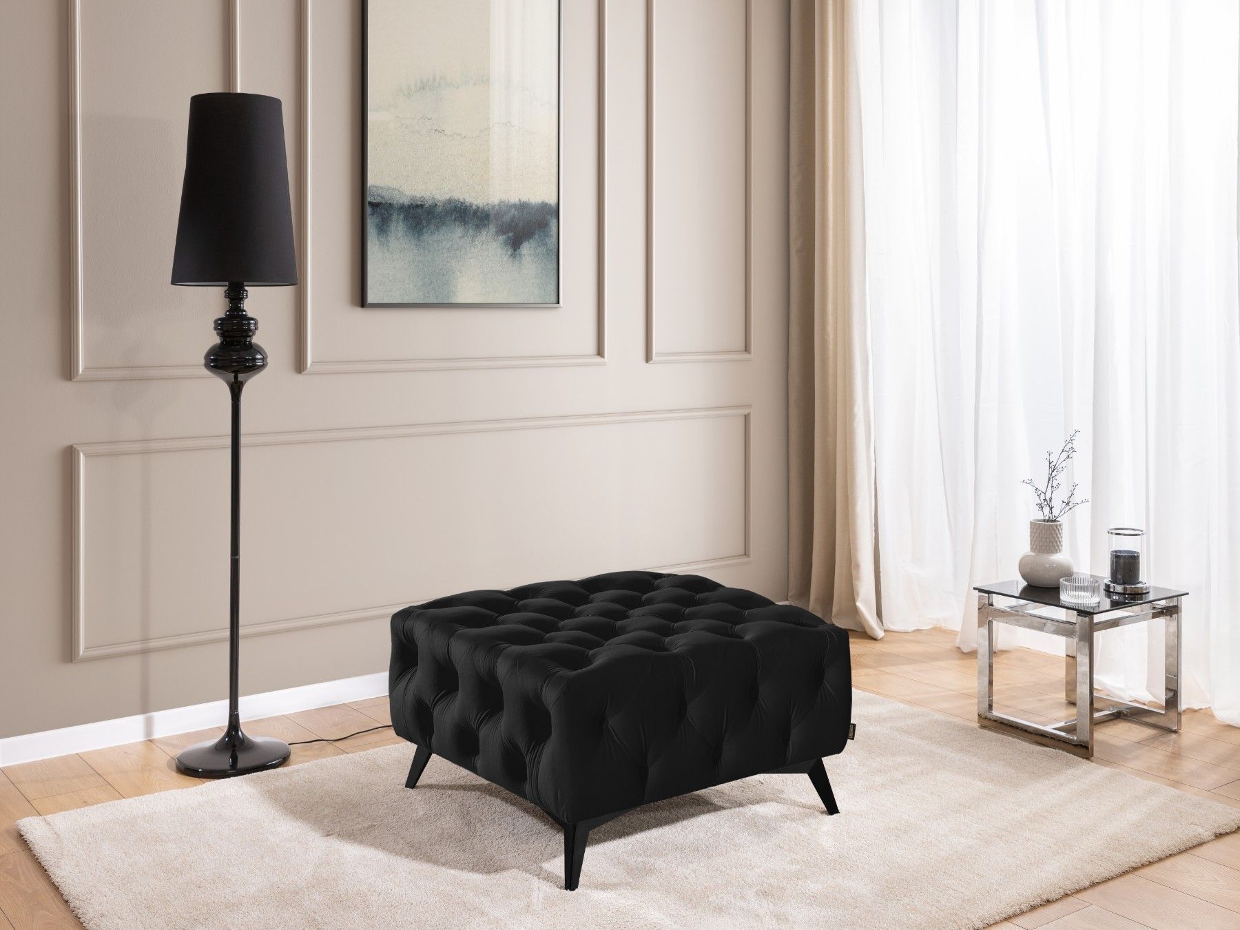 Whitby - Chesterfield Luxus Fußhocker aus Samt mit schwarzen Füßen