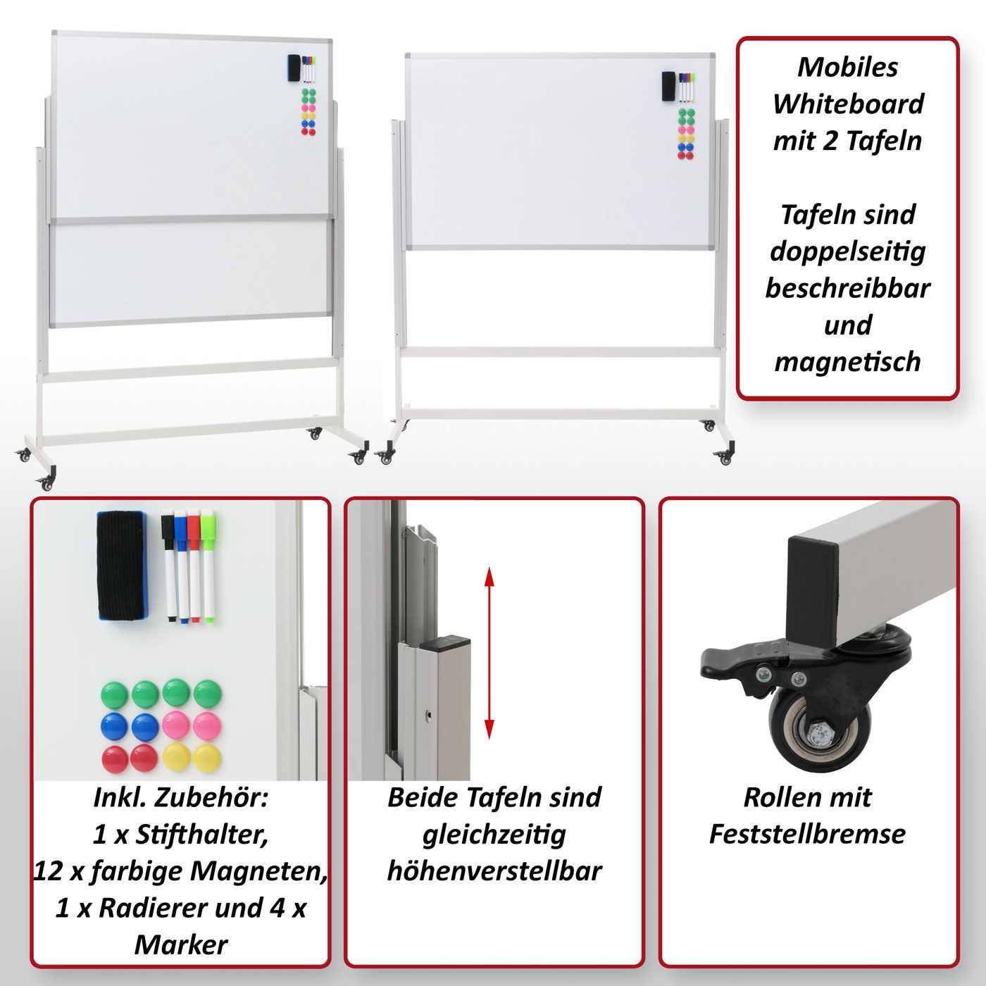 Mendler Whiteboard HWC-L87, Magnettafel, beschreibbar höhenverstellbar inkl. Zubehör
