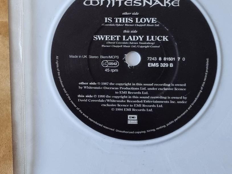 Whitesnake - Is This Love / Sweet Lady Luck 7'' Vinyl UK Limited WHITE VINYL