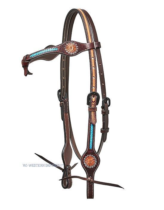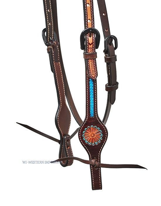 WI Horseman`s Tack Kopfstück m Blumen Zaum Westerntrense braun türkis VB Cob neu