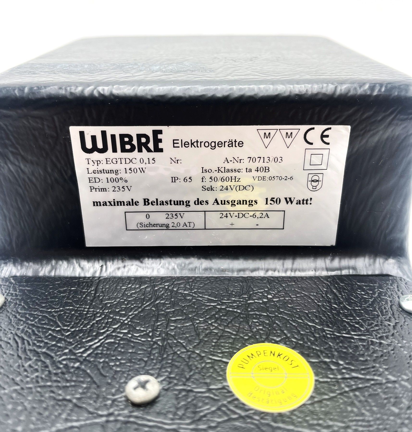 WIBRE EGTDC 0,15 Transformator 235V auf 24V DC 6,2A 150VA Trafo T9/286