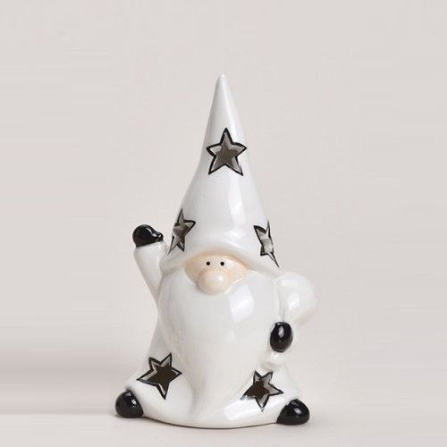 Wurm Wichtel Deko Zipfelmütze weiß schwarz Keramik Geschenk Stern Weihnachten Kerze