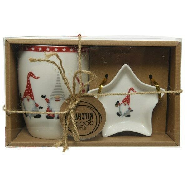 Kaemingk Wichtel Tasse mit Stern Teller Porzellan Geschenkset Nikolaus Geschenkkarton