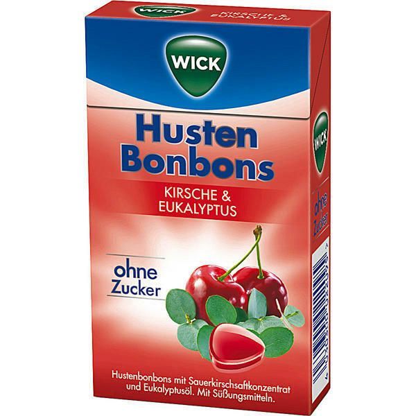 • WICK Kirsche mit Eukalyptus fruchtige zuckerfreie Halsbonbons 46g