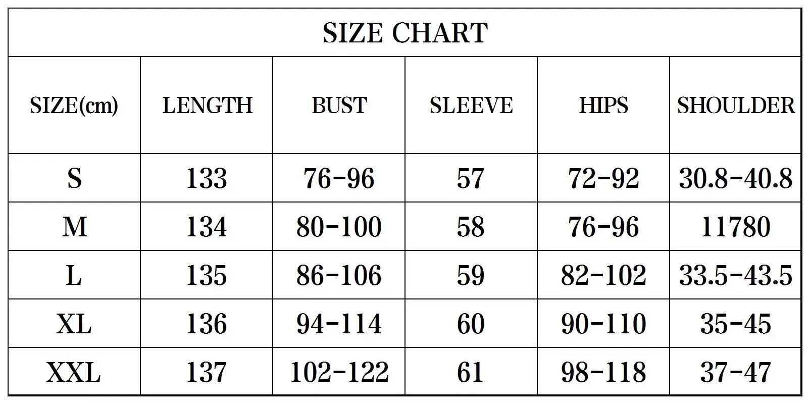 S, M, L und XL