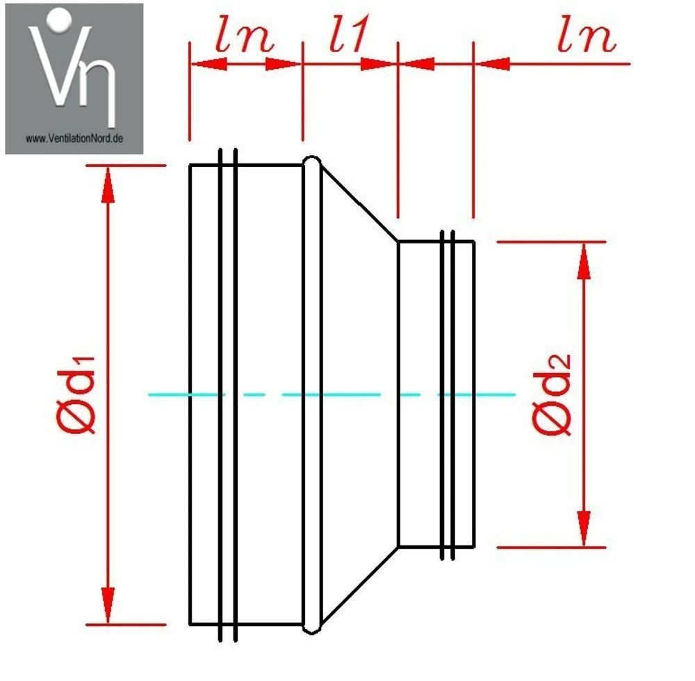 Wickelfalzrohr Reduzierung Dichtlippen Ø80 100 125 140 150 160 200 RD
