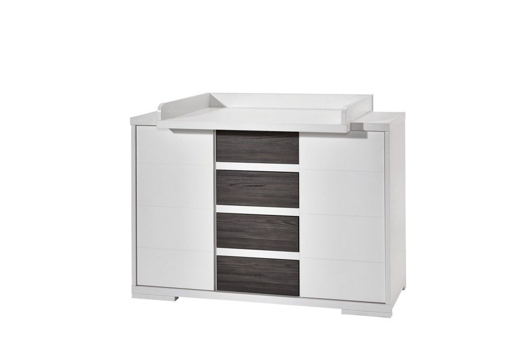Schardt Wickelkommode mit 4 Schubladen- Wickeltisch Wickelaufsatz-Weiß/Fleetwood