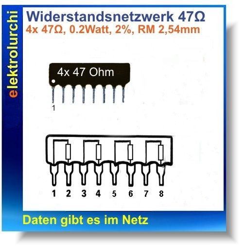 Widerstandsnetzwerk, Array 4x 47 Ohm, 8Pin, 2%, 0,2Watt, RM 2,54, 5St.