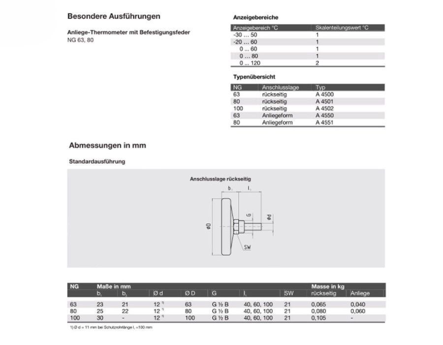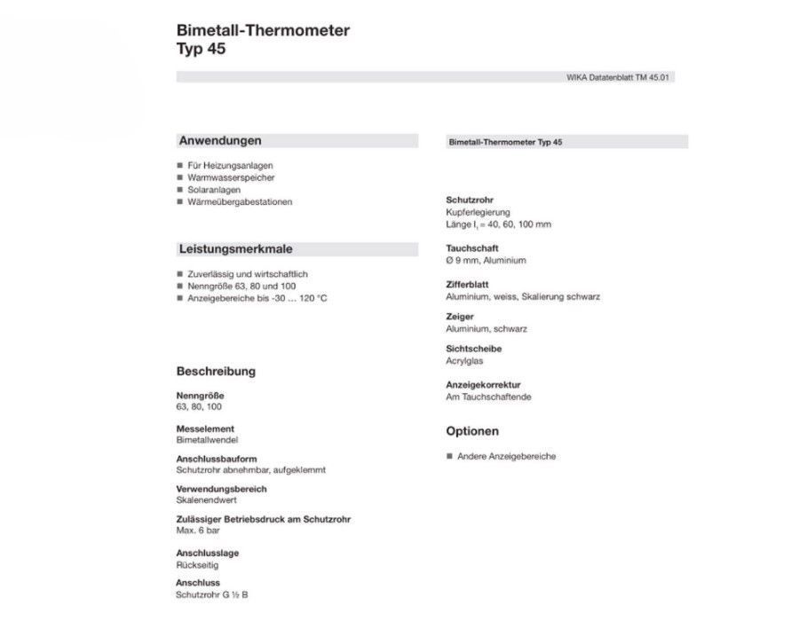 Wika Bimetall Zeigerthermometer 0-120 °C Ø 63 80 100 mm 1/2" Tauchhülse Heizung