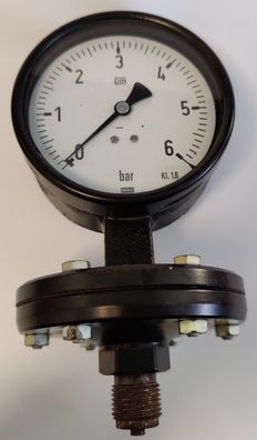 WIKA Plattfeder-Manometer Ø100mm 0-6 bar AG 1/2" radial Grauguss sehr robust-NEU