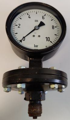 WIKA Plattfeder-Manometer Ø100mm 0-10 bar AG 1/2" radial Grauguss sehr robust-NEU