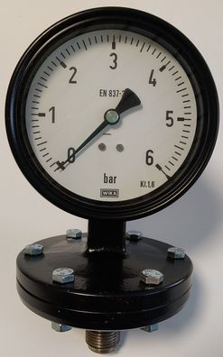 WIKA Plattfeder-Manometer Ø100mm 0-6 bar AG 1/2" radial Grauguss sehr robust