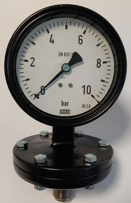 WIKA Plattfeder-Manometer Ø100mm 0-10 bar AG 1/2" radial Grauguss sehr robust