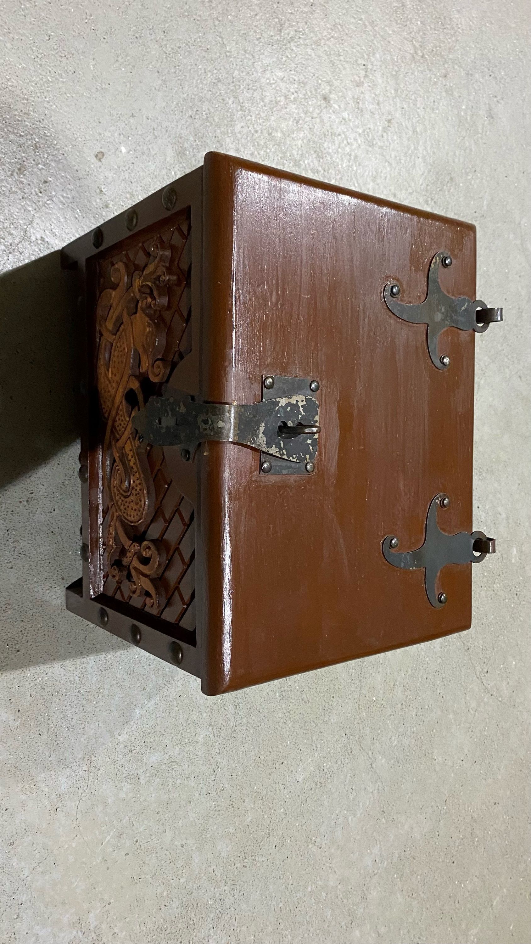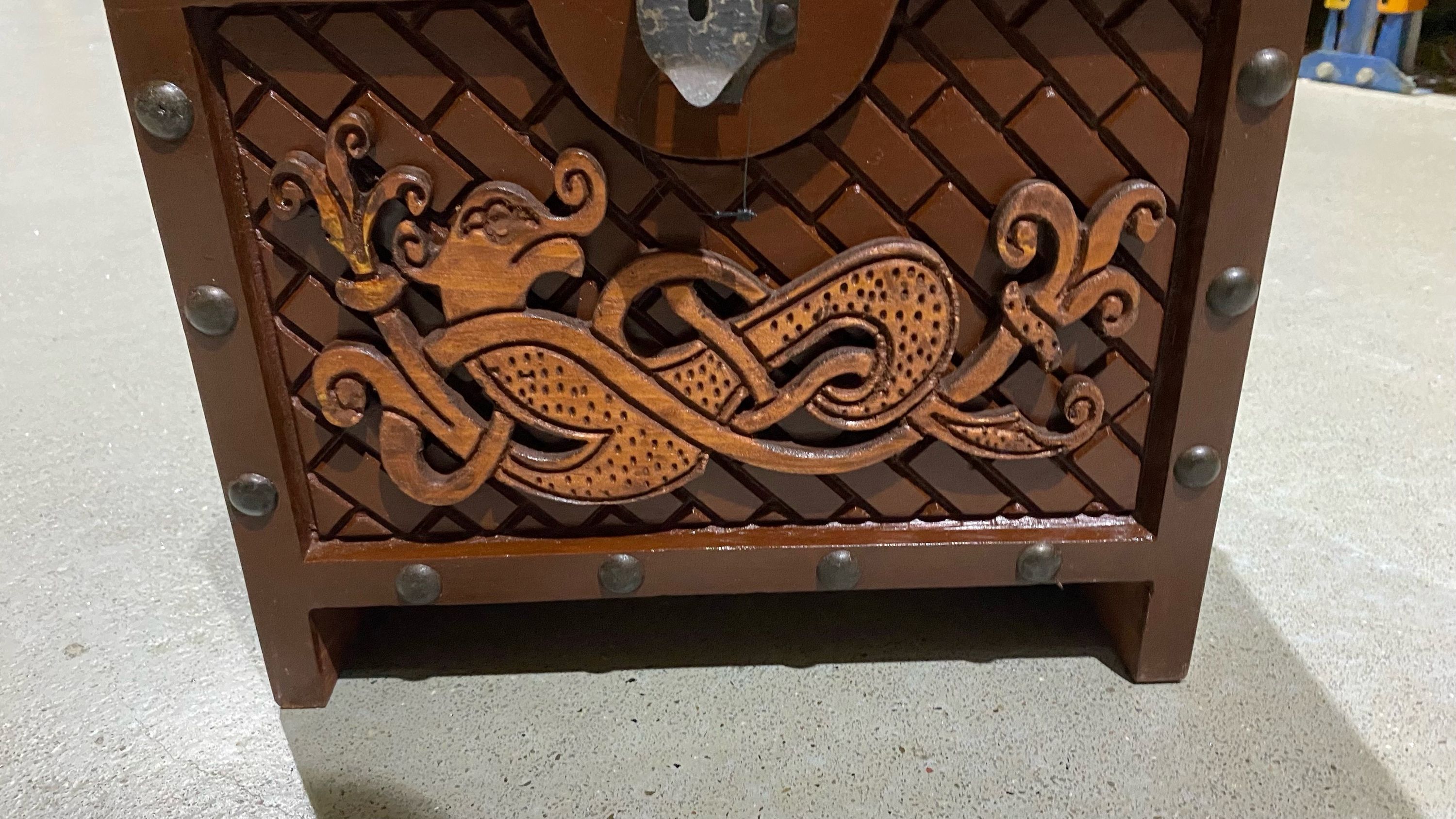 Wikinger Holzkiste mit Midgardschlangen-Motiv, ca. 33 x 25 x 28 cm, mit Mängeln