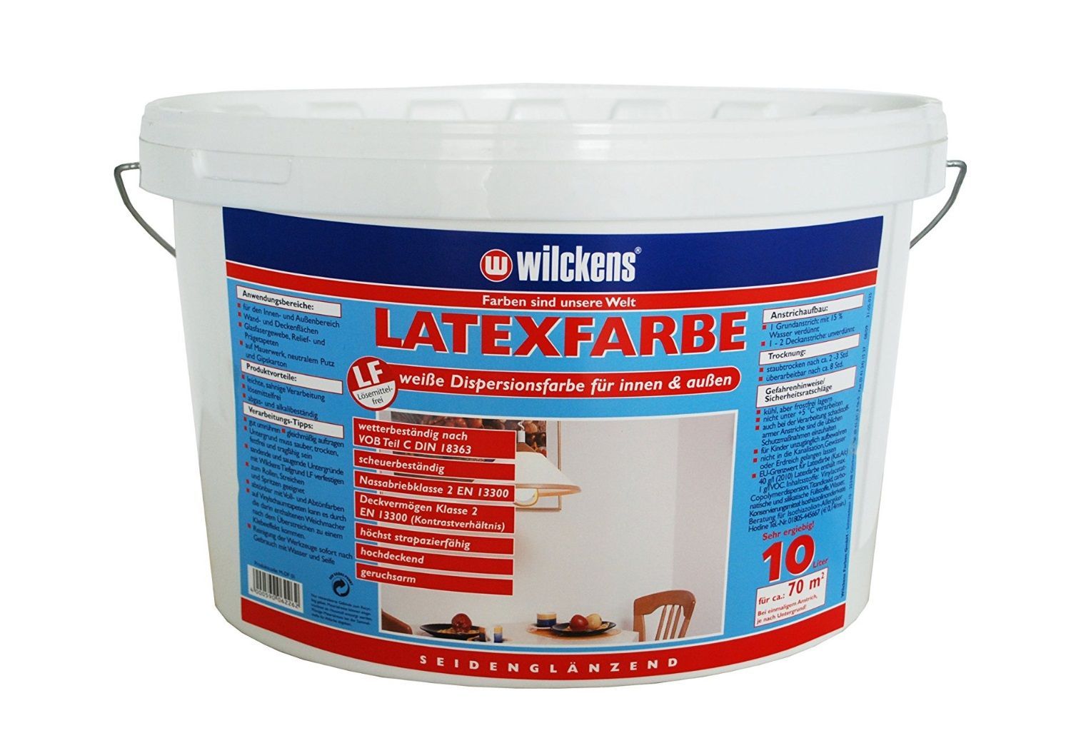 Wilckens 10 L Latexfarbe weiße Farbe Latex seidenglänzend, hochdeckend