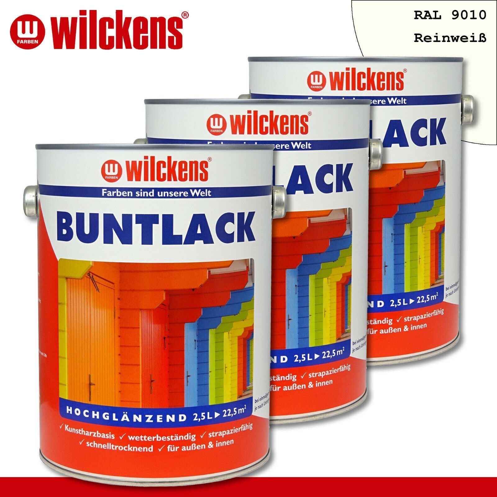 Wilckens Wilckens 3 x 2,5 l Buntlack hochglänzend RAL 9010 Reinweiß innen & außen Lack