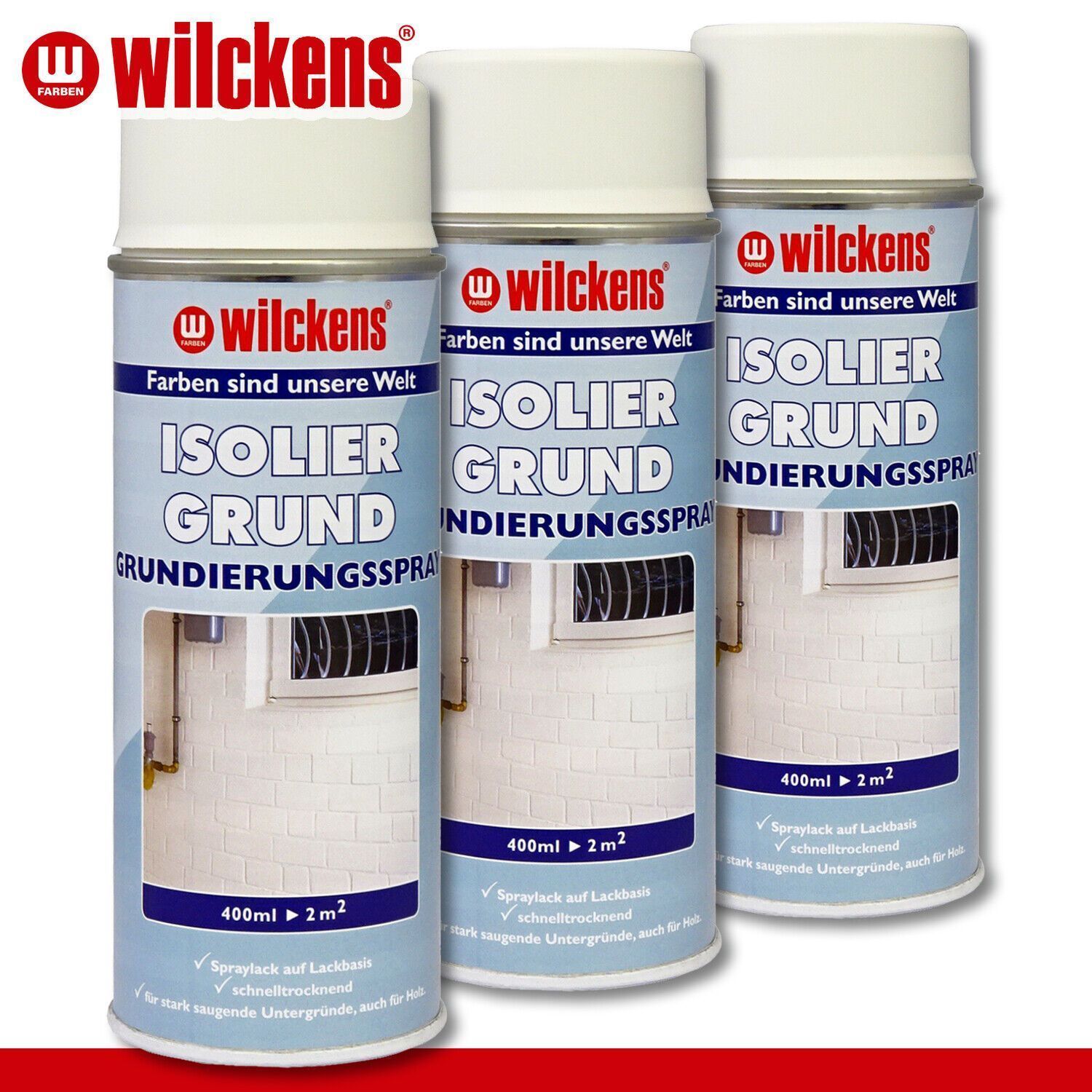 • Wilckens 2 x 400 ml Isoliergrund Grundierungs-Spray Schutzanstrich innen & außen