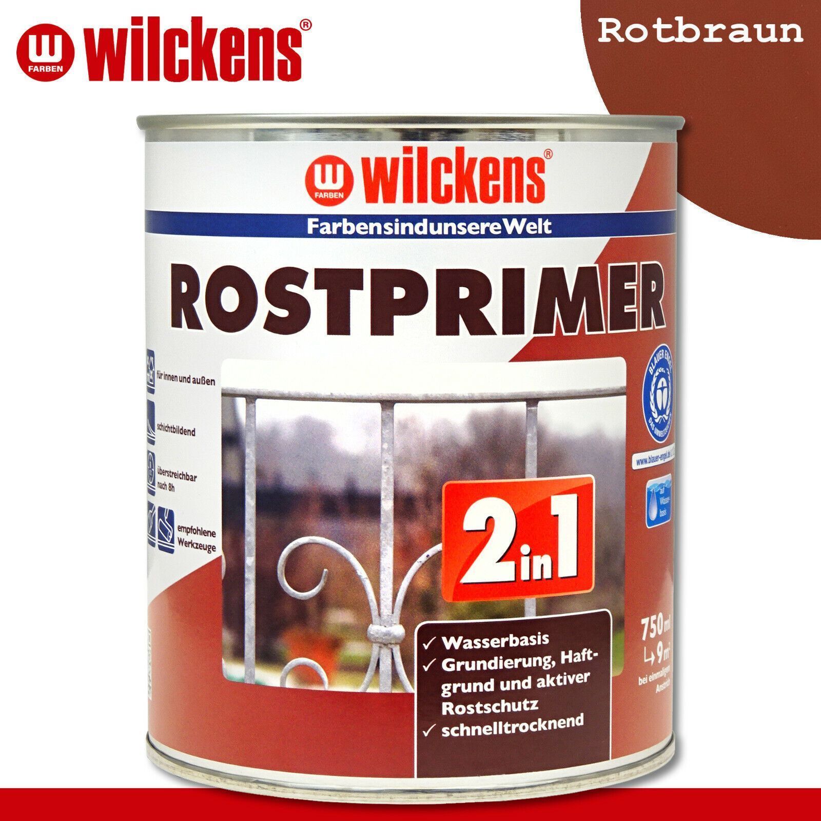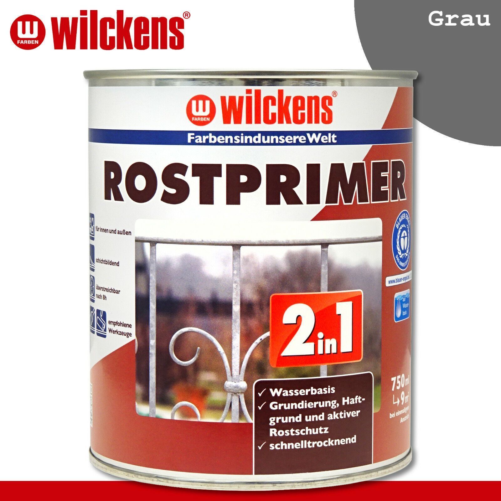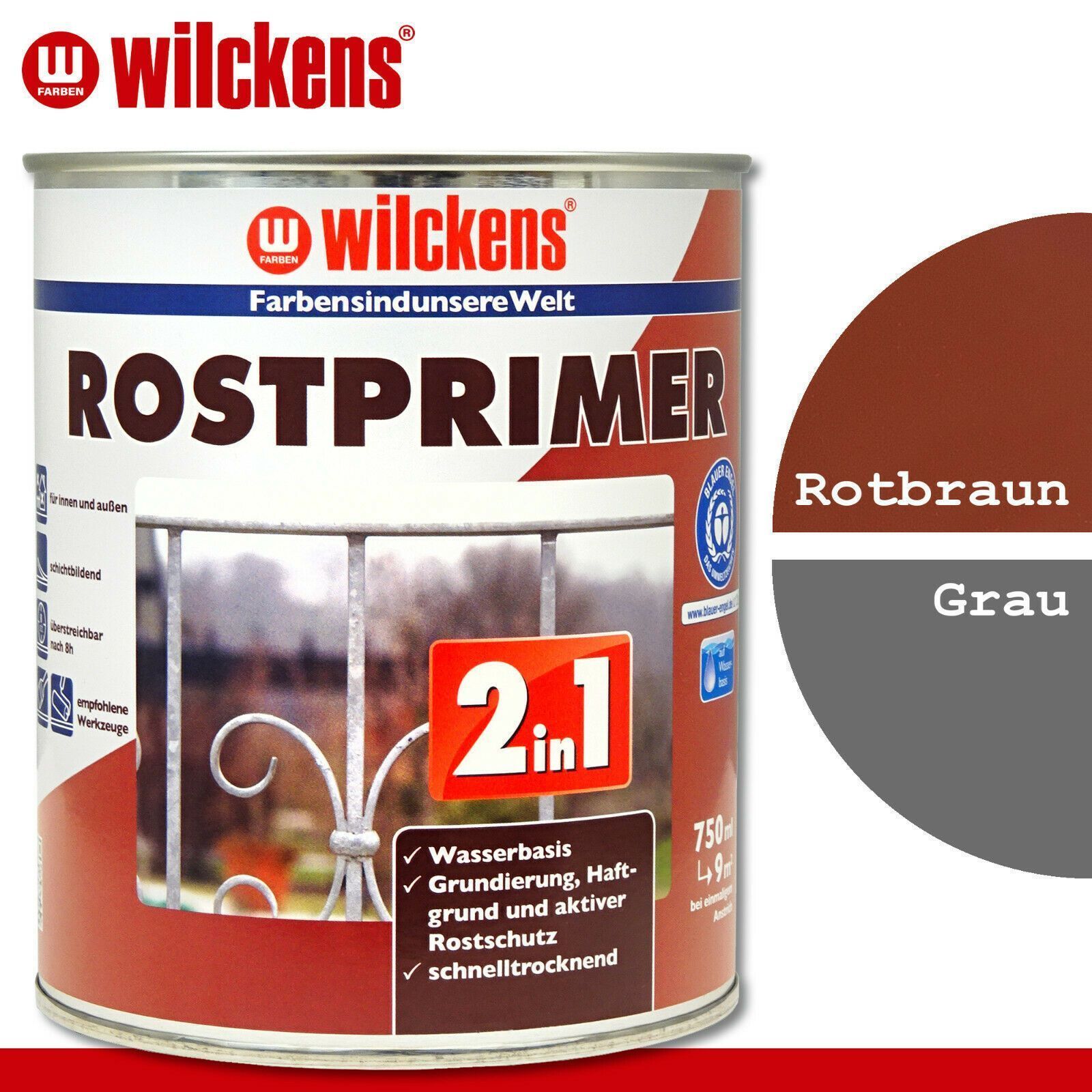 Wilckens 750 ml Rostprimer 2in1 Euro Innen- und Außenbereich Euro Grundierung, Haftgrund und aktiver Rostschutz Euro Wasserverdünnbar Euro Schichtbildend Euro Hohe Haftfestigkeit Euro Sehr guter Rostschutz Euro Schnelltrocknend Beschreibung Haftvermittelnde, rostschützende Spezialgrundierung mit her