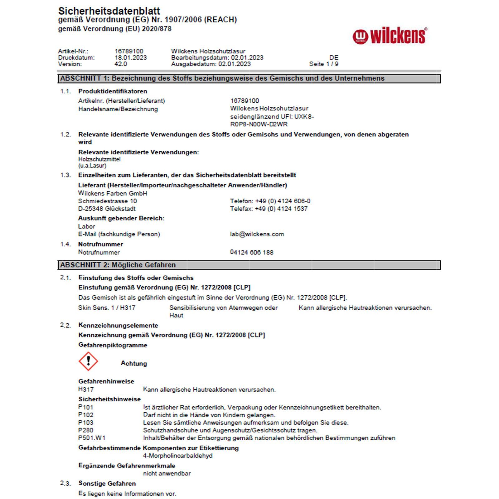 Wilckens Holzschutzlasur Seidenglänzend 0.75 LTR Aussen Schutzlasur Wetterschutz