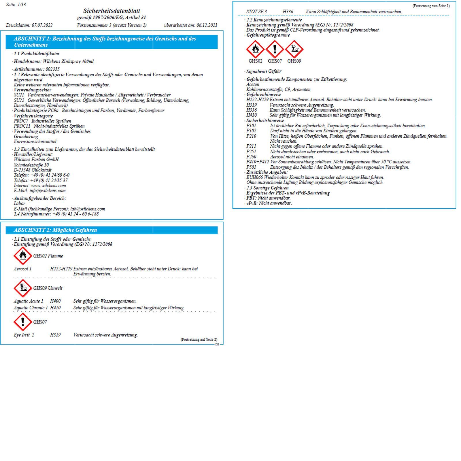 • Behälter steht unter Druck: kann bei Erwärmung bersten.