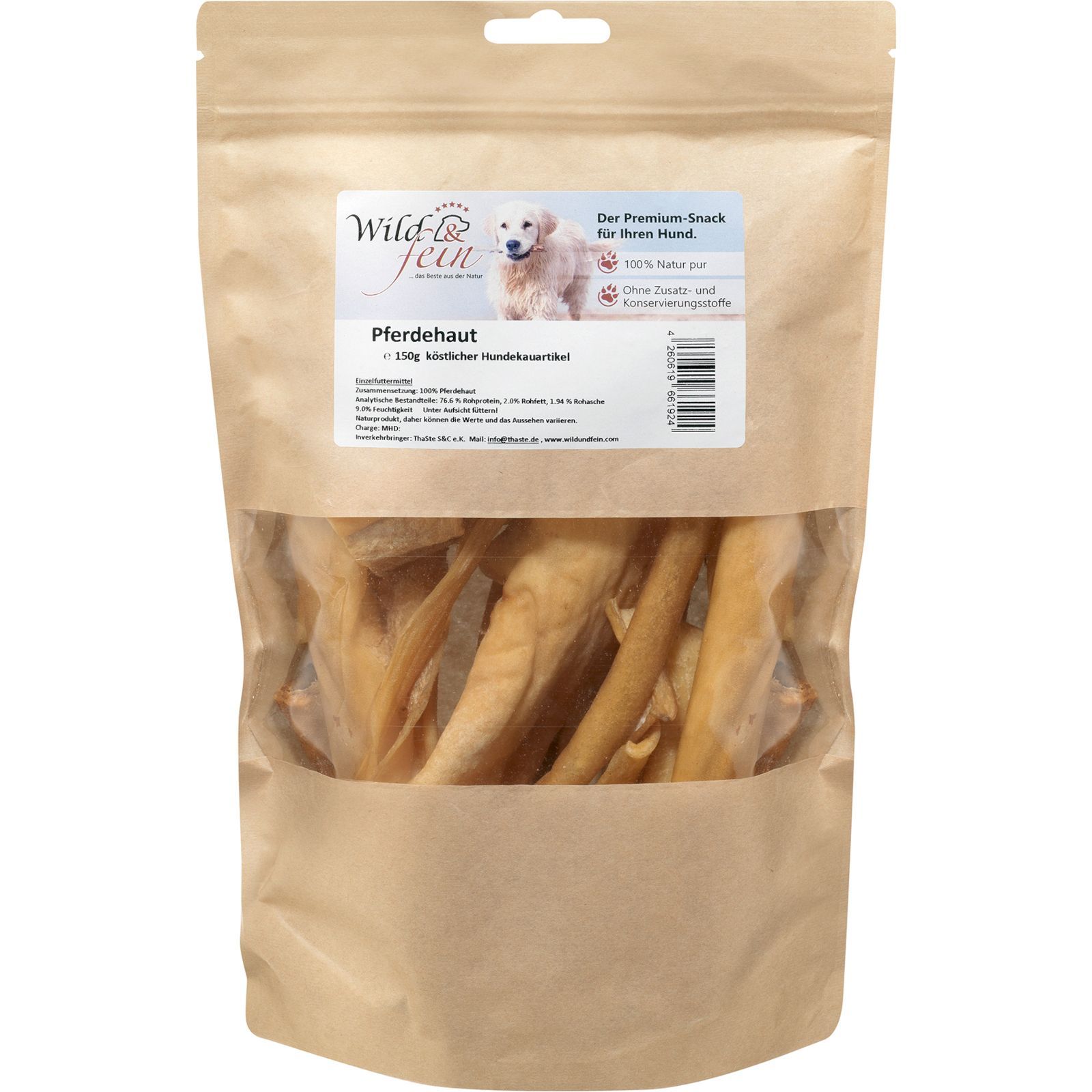 Wild & Fein Pferdehaut - 150 g - natürlicher Kausnack für Hunde