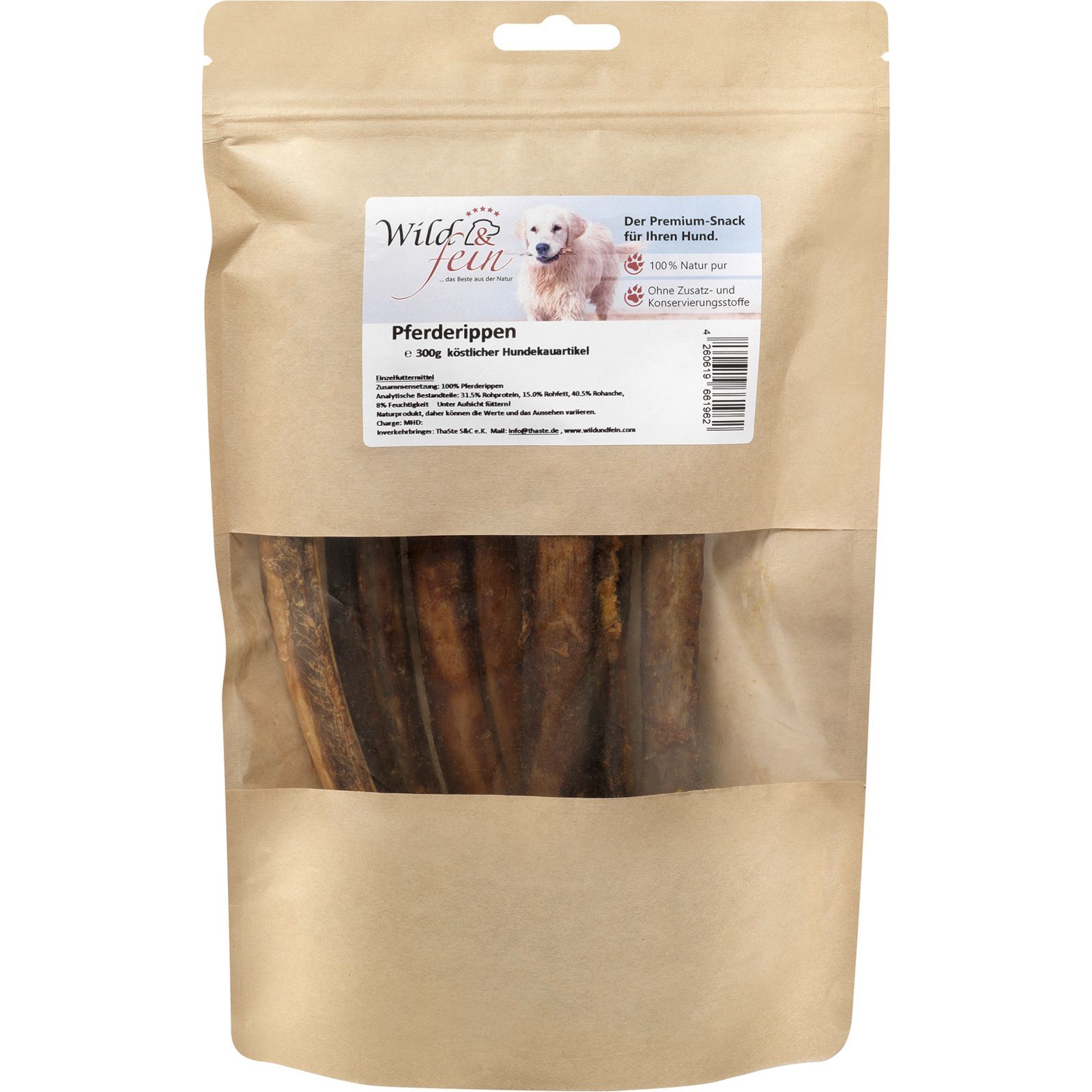 Wild & Fein Pferderippen - 300 g - natürlicher Snack für Hunde