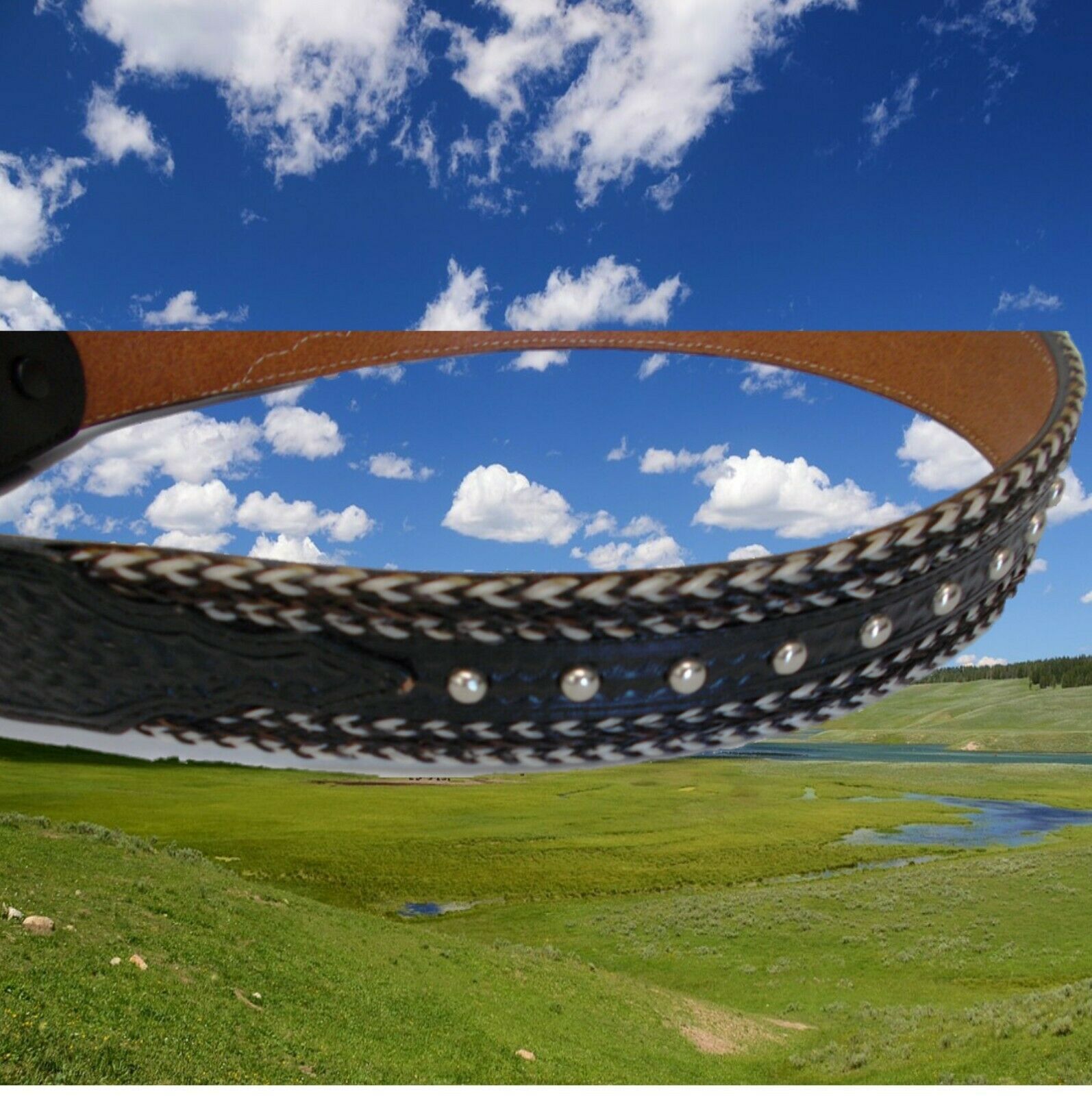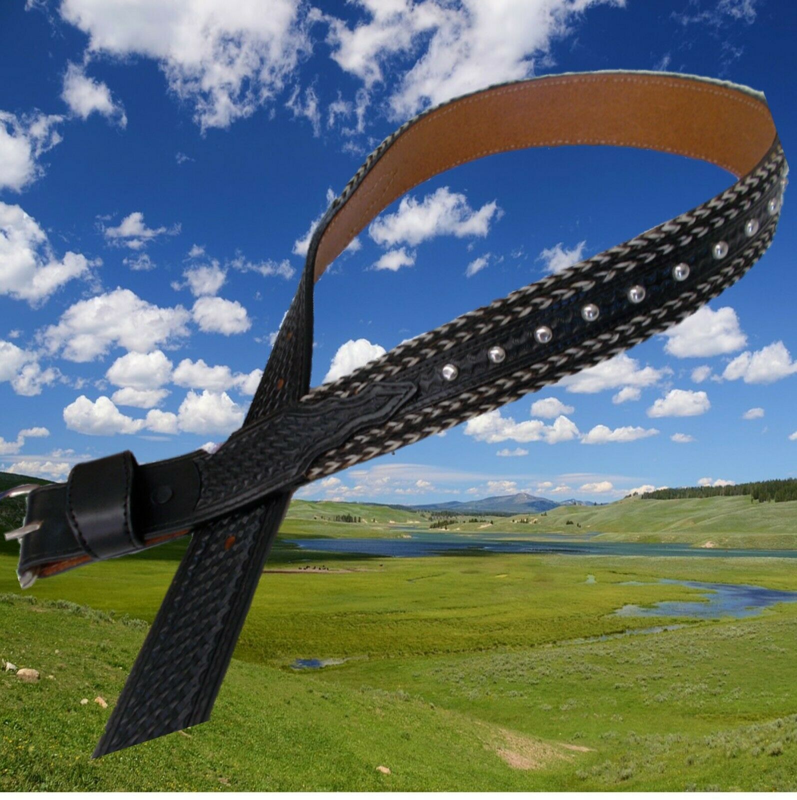 Wild West Ledergürtel mit Pferdehaar-Flechteinlagen und Dots, schwarz Sehr hochwertiger punzierter Ledergürtel Dickes robustes Leder Schnalle mittels Druckknopf wechselbar (für Buckles geeignet) Mit Dots und Flechteinlagen aus Pferdehaar Der Gürtel wird mit Gürtelschnalle geliefert. Sie können aber