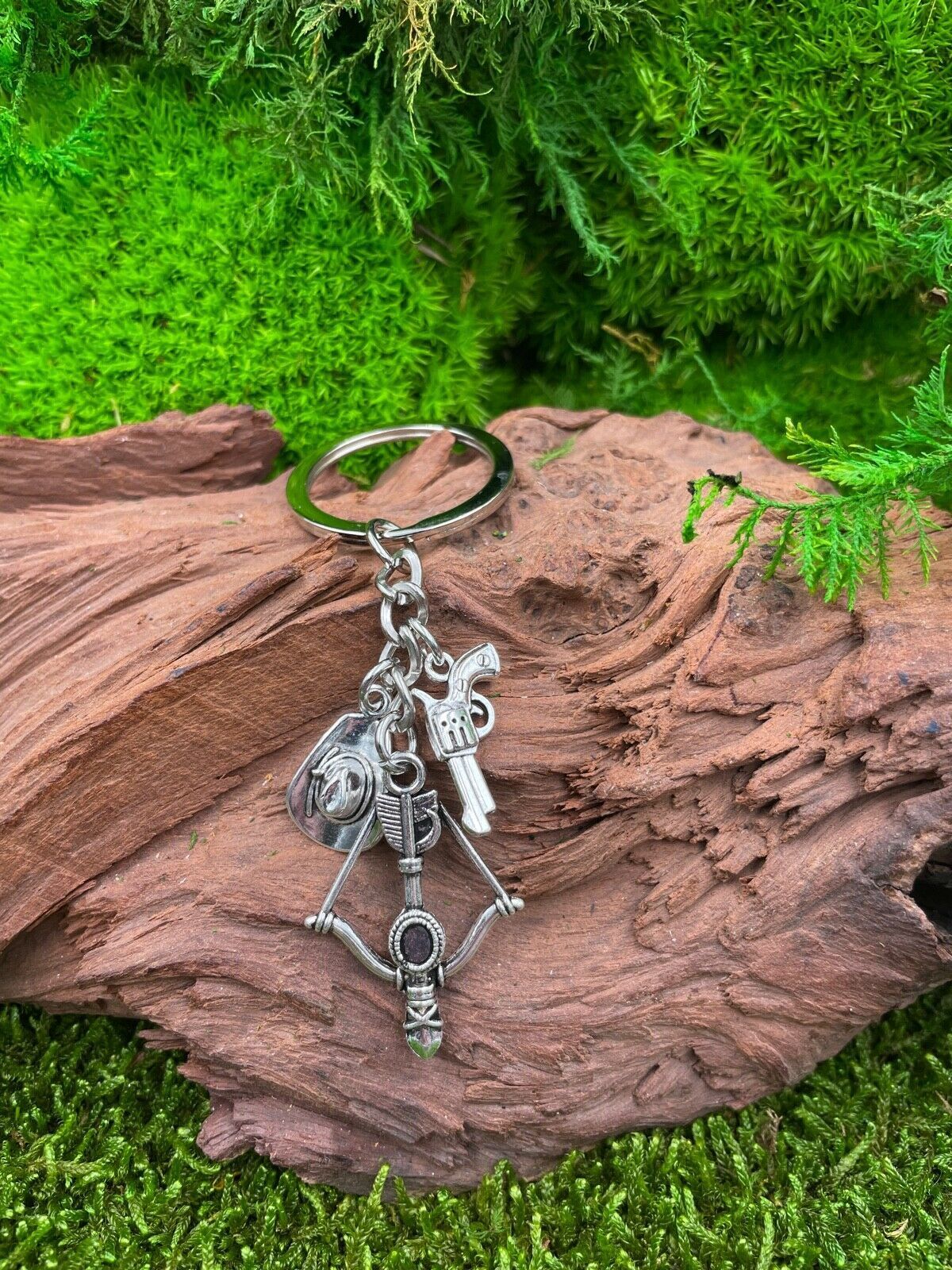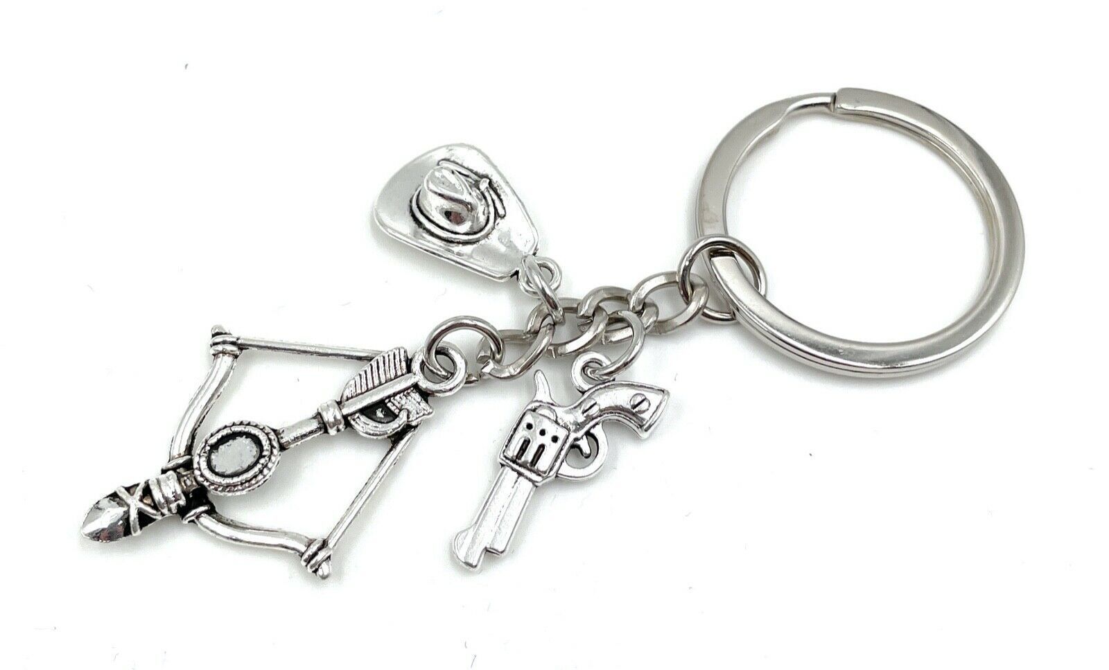 Wilder Westen Cowboy Hut Armbrust Revolver Schlüsselanhänger aus Metall