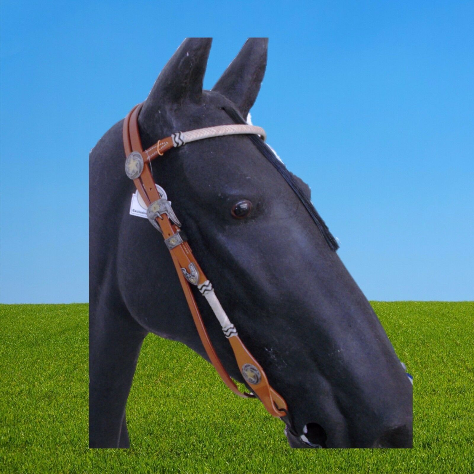 Wildhorn Westernkopfstück Cimarron *als Turnier Kopfstück verwendbar *Stabiles Kopfstück aus amerikanischem Leder *Stirnriemen aus geflochtener Rohhaut *Verziehrungen seitlich geflochtene Rohhaut *Attraktive Schnallen sh. 2. Bild *Farbe chestnut Bildschirmfarben können abweichen Rücksendungen Retour