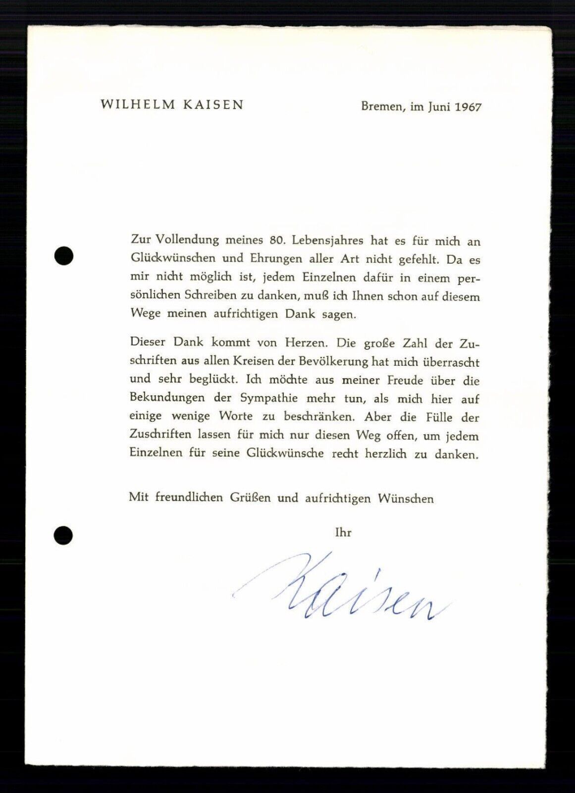 Wilhelm Kaisen 1887-1979 Bürgermeister Bremen 1945-65 Orig. Sign. # BC G 38912