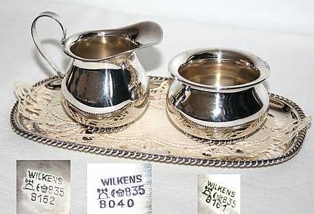 Wilkens - kleines Tablett mit Milchkännchen und Zuckerdose 835er Silber aus den 1960er Jahren Das kleine Tablett ist oval und hat einen gedrehten Rand, die Milchkanne und die Zuckerdose haben ebenfalls einen gedrehten Rand als Fuß. Das kleine Tablett ist 18,5 cm lang und 10,7 cm breit. Die Milchkann