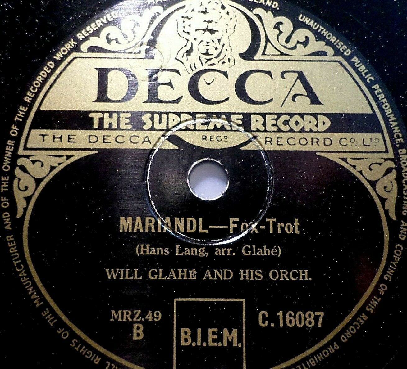 WILL GLAHE "Mariandl / Ich schenk´ dir Rosen" Decca 78rpm 10"