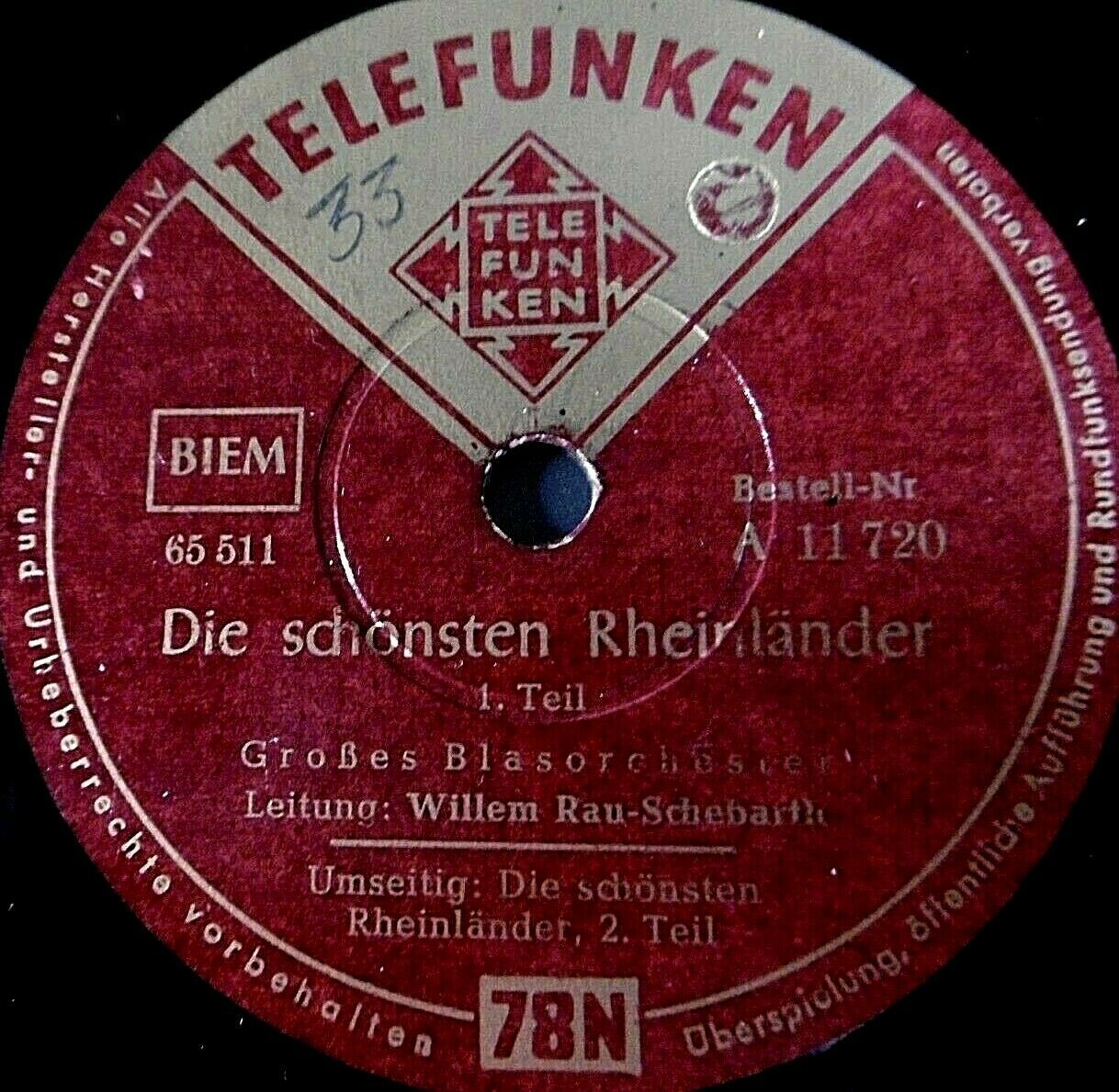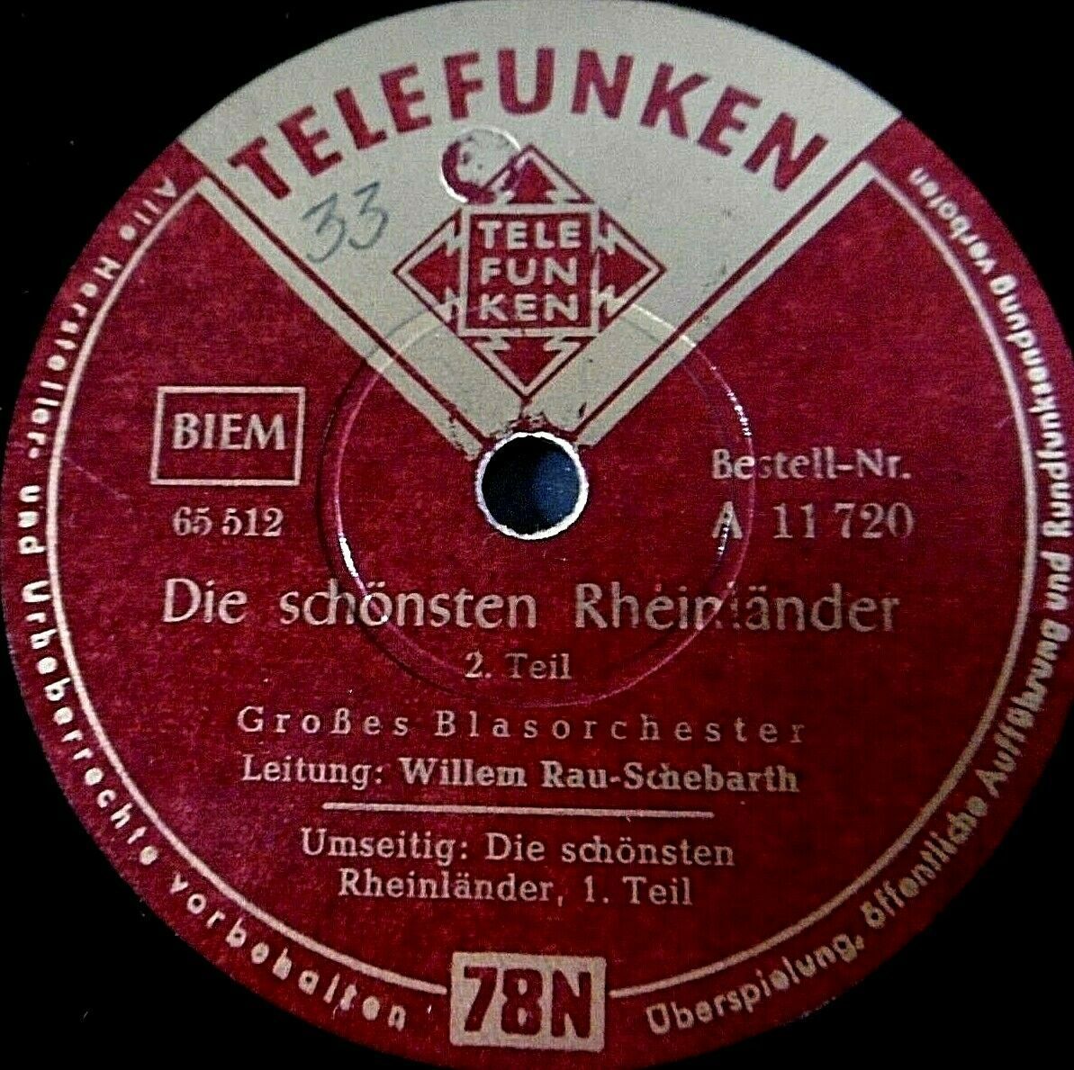 WILLEM RAU-SCHEBARTH "Die schönsten Rheinlieder - Teil I & II" Telefunken 78rpm