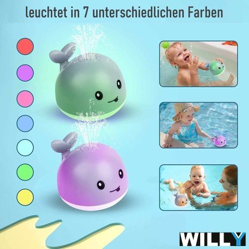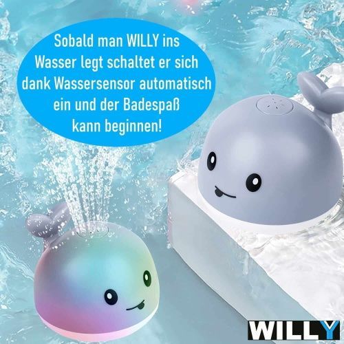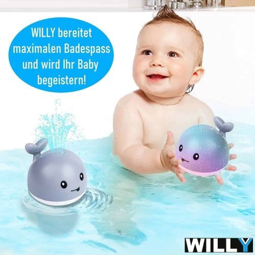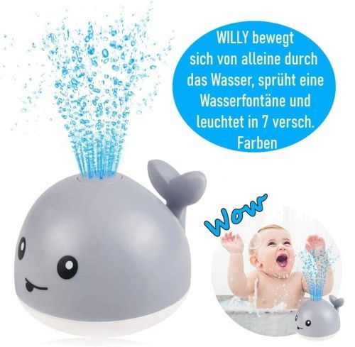 WILLY Wal Badespielzeug Wasserspielzeug Baby Kinder Fontäne & LED Beleuchtung