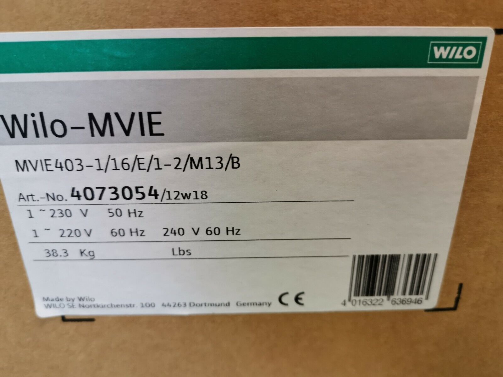 Wir bieten an: Wilo Multivert MVIE 403-1-16-E-1-2-M13, Vertikale Hochdruckkreiselpumpe, 230V Besonderheiten Produktvorteile - Einfache Inbetriebnahme - IE2-Normmotoren - Integrierter Frequenzumformer - Motorvollschutz - Große Regelbandbreite - Hydraulik aus Edelstahl 1.4301 (AISI 304) oder 1.4404 (A