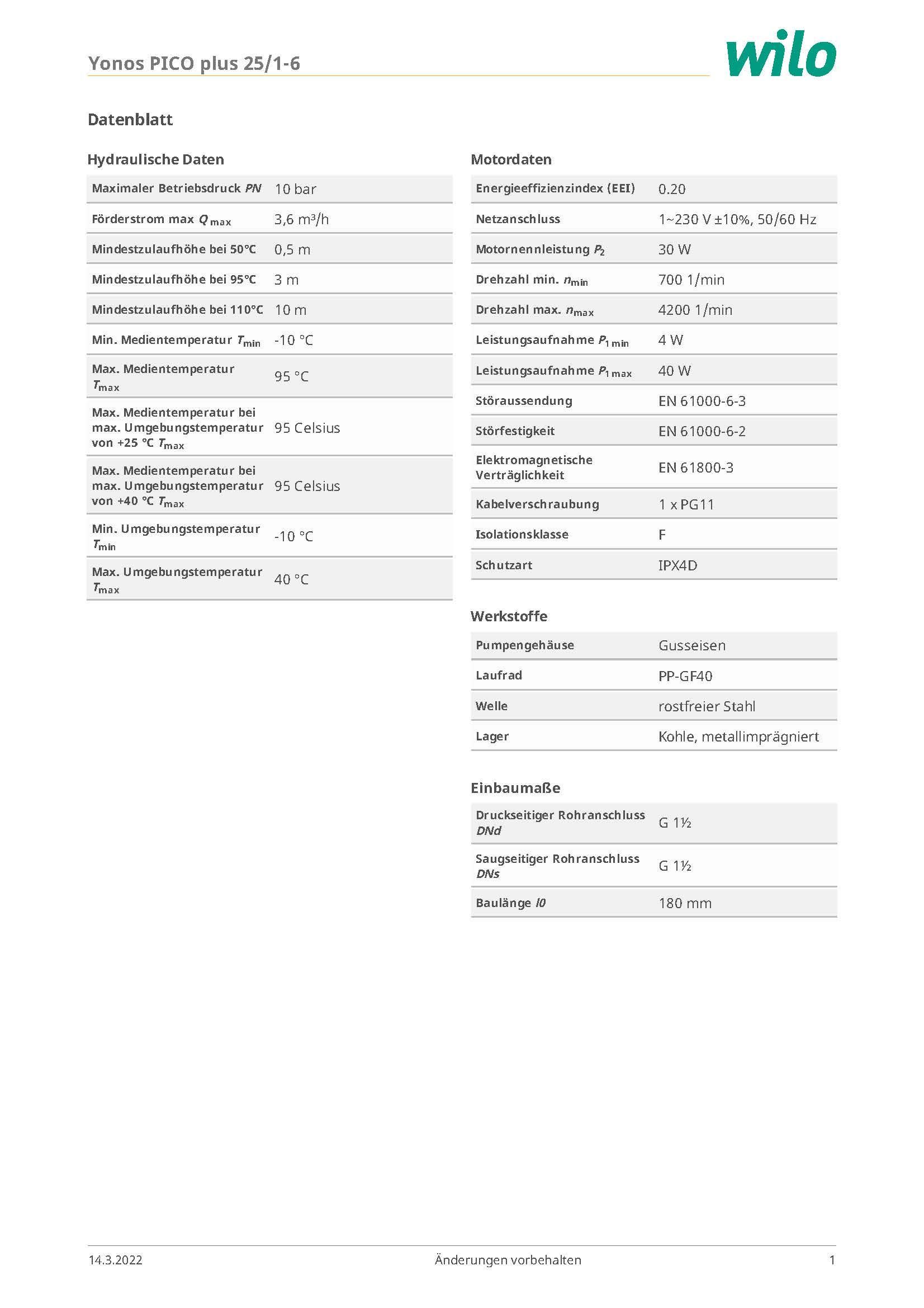 Wilo Wilo YONOS PICO plus 25/1-6 180mm Heizungspumpe Hocheffizienzpumpe