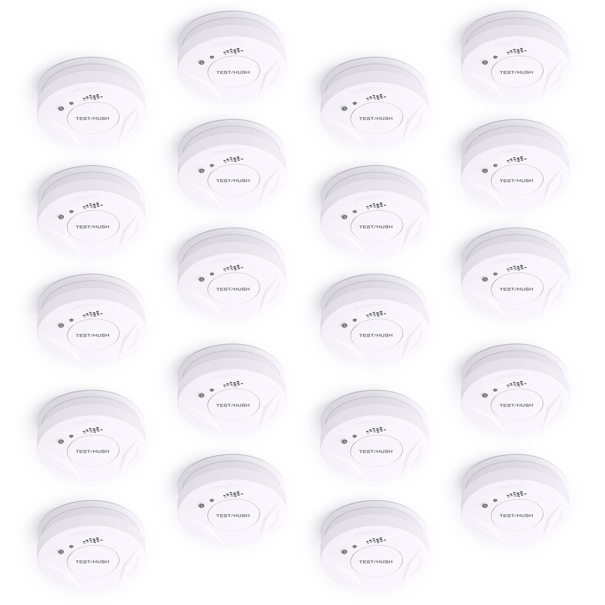 Wiltec 20x Rauchmelder 9-V-Batterie Feuermelder HUSH-Funktion Brandschutzmelder