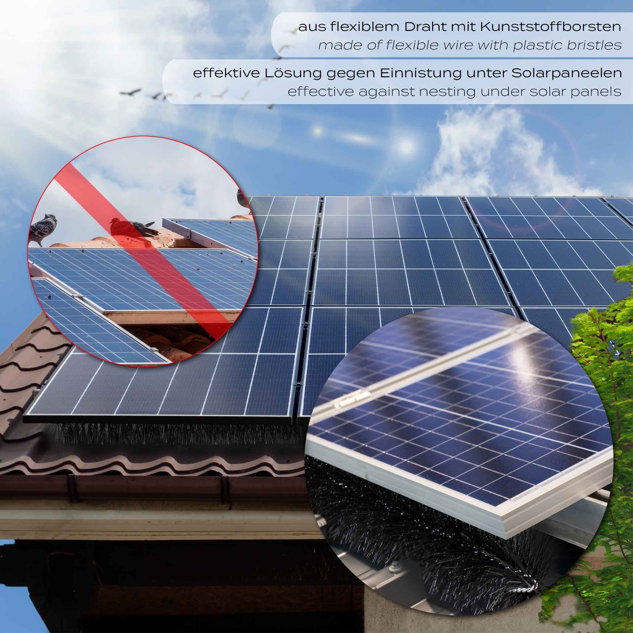 Wiltec 24m Nistschutzbürste 20x120cm Ø12cm Solarpaneele Einnistschutz flexibel