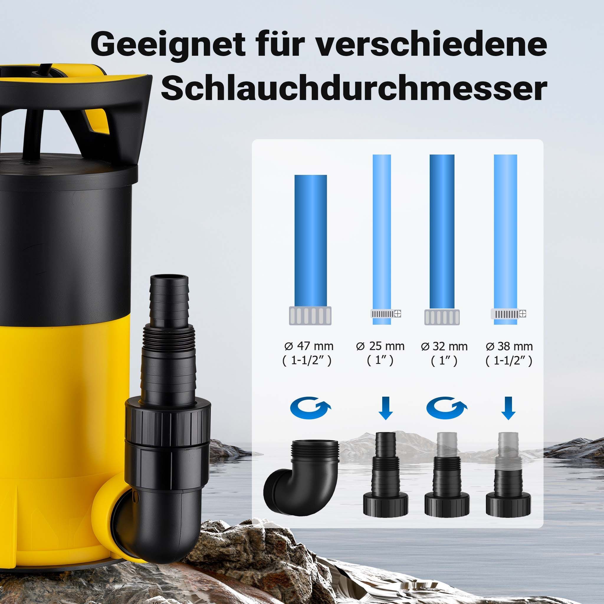 Wiltec 3in1 Flachsaugpumpe 550W Schmutzwasserpumpe 12500l/h Tauchpumpe Schwimmer