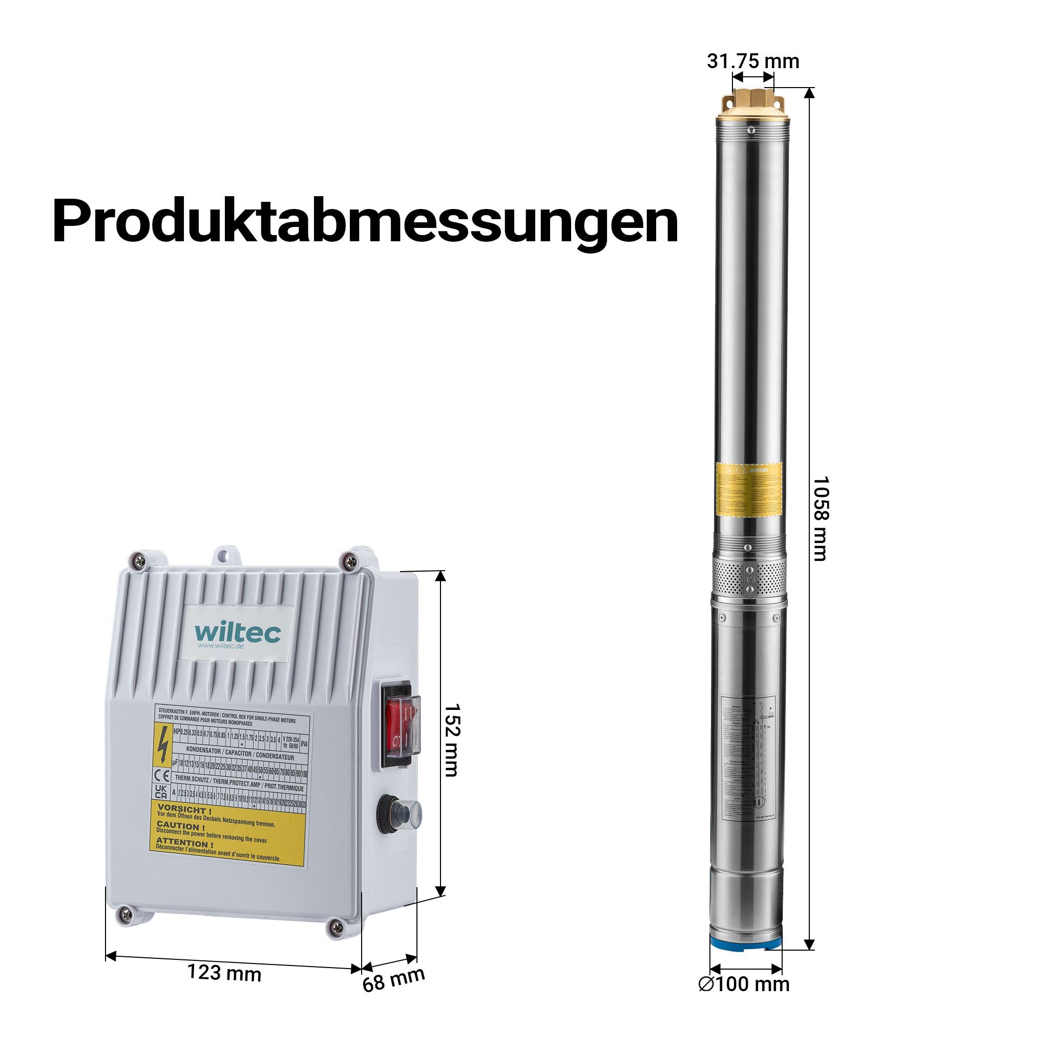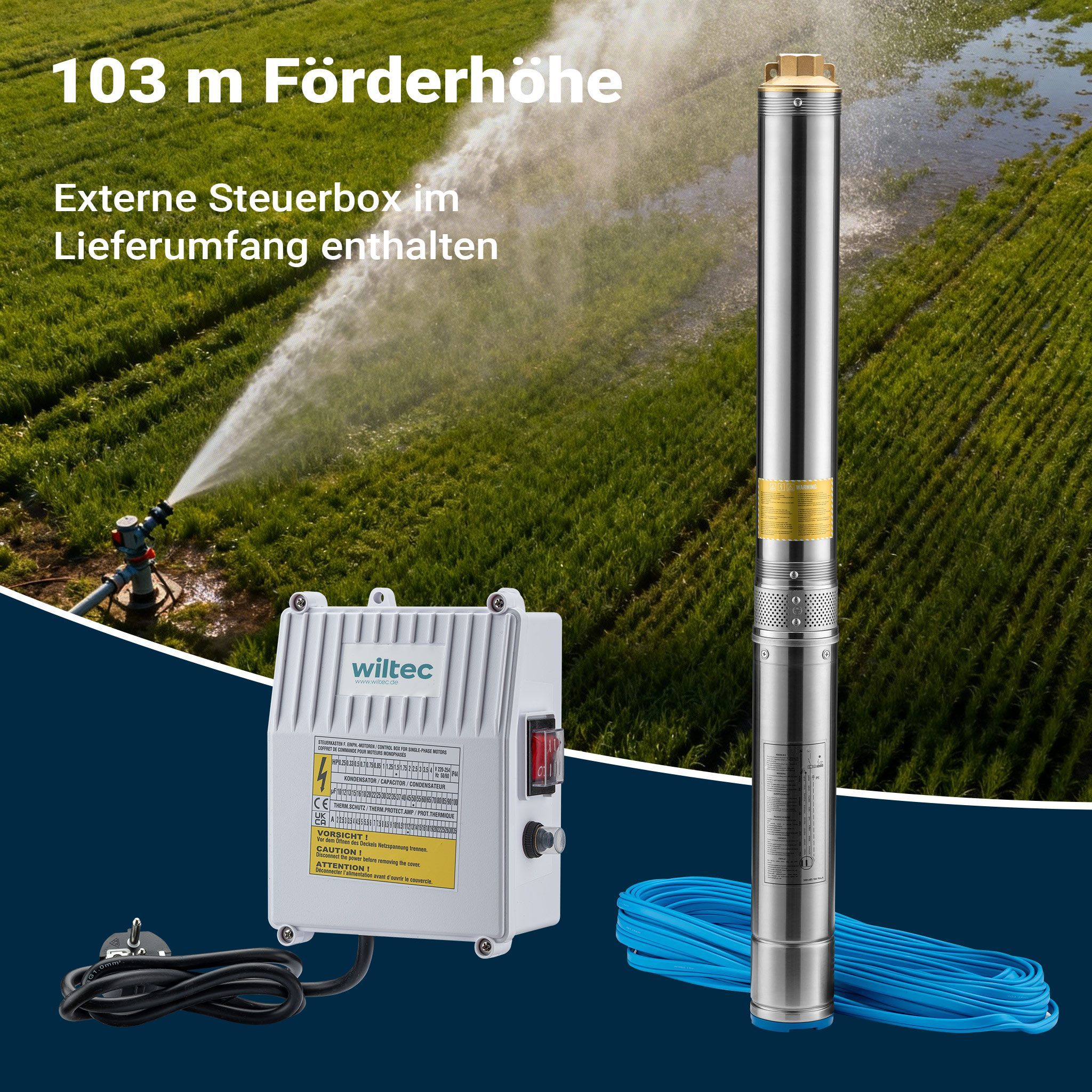 Wiltec 4" Tiefbrunnenpumpe 1100W Wasserpumpe 6000l/h Tauchpumpe Brunnenpumpe