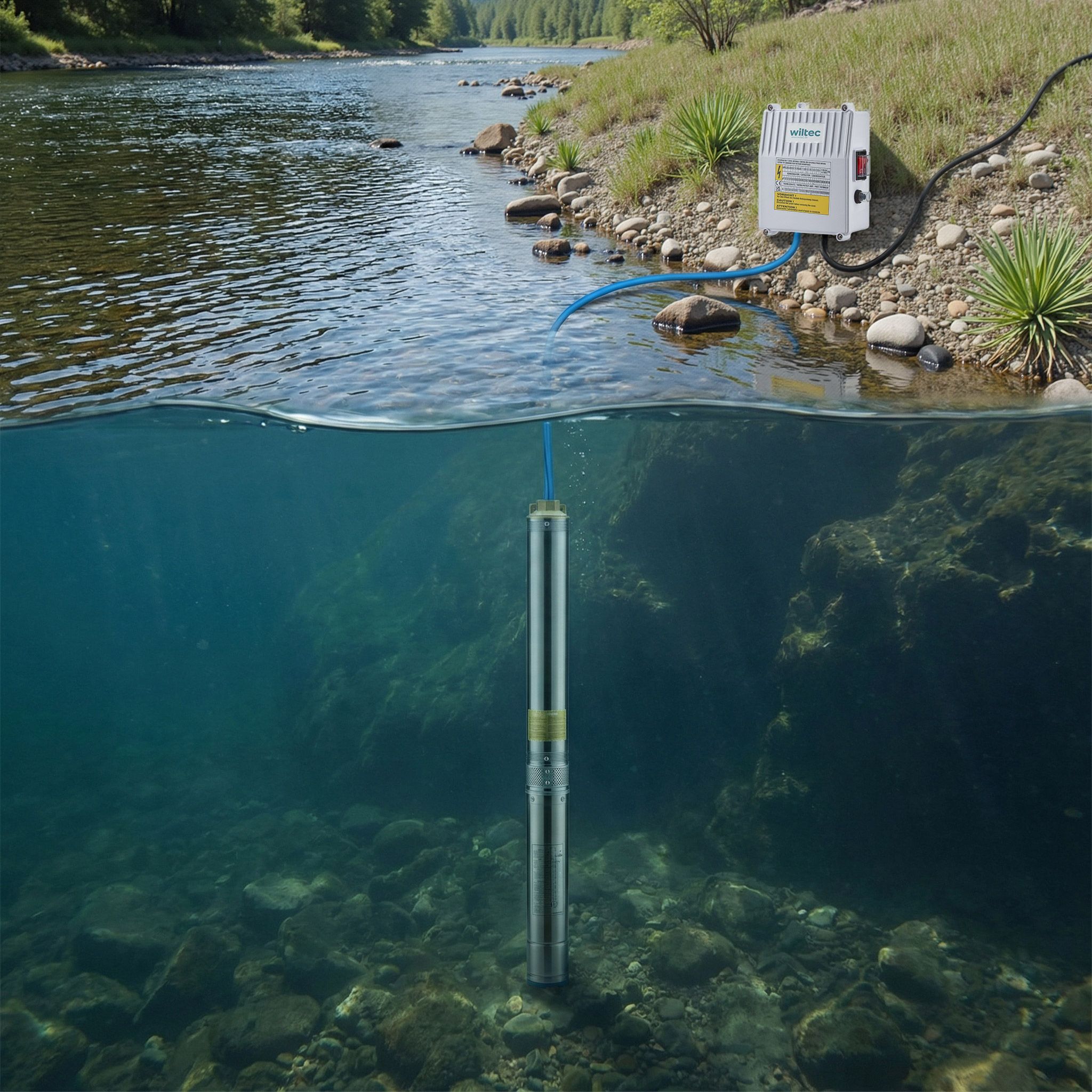 Wiltec 4" Tiefbrunnenpumpe 750W Wasserpumpe 6000l/h Tauchpumpe Brunnenpumpe