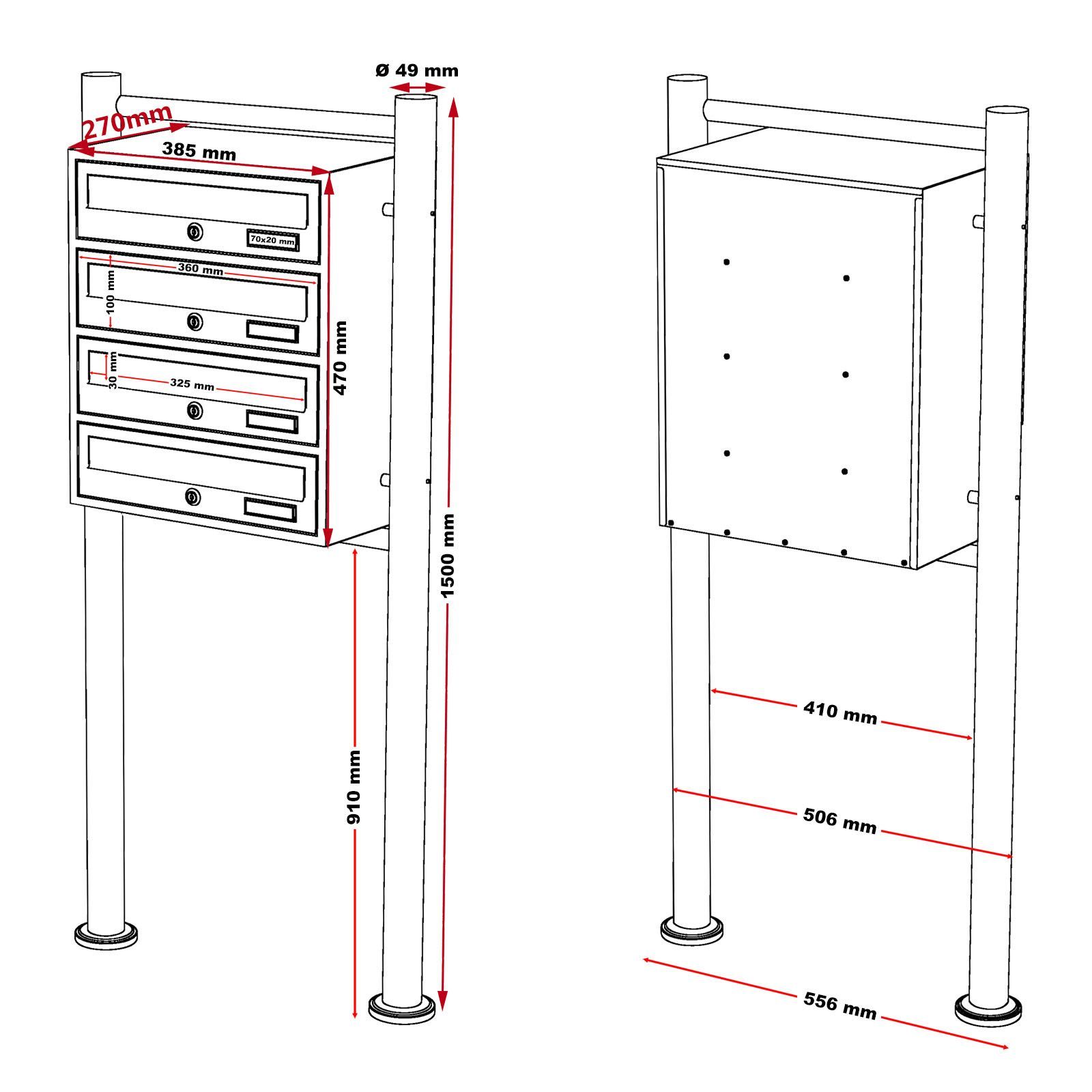 Wiltec 4er Briefkastenanlage Anthrazit 556x270x1500mm Standbriefkasten Post