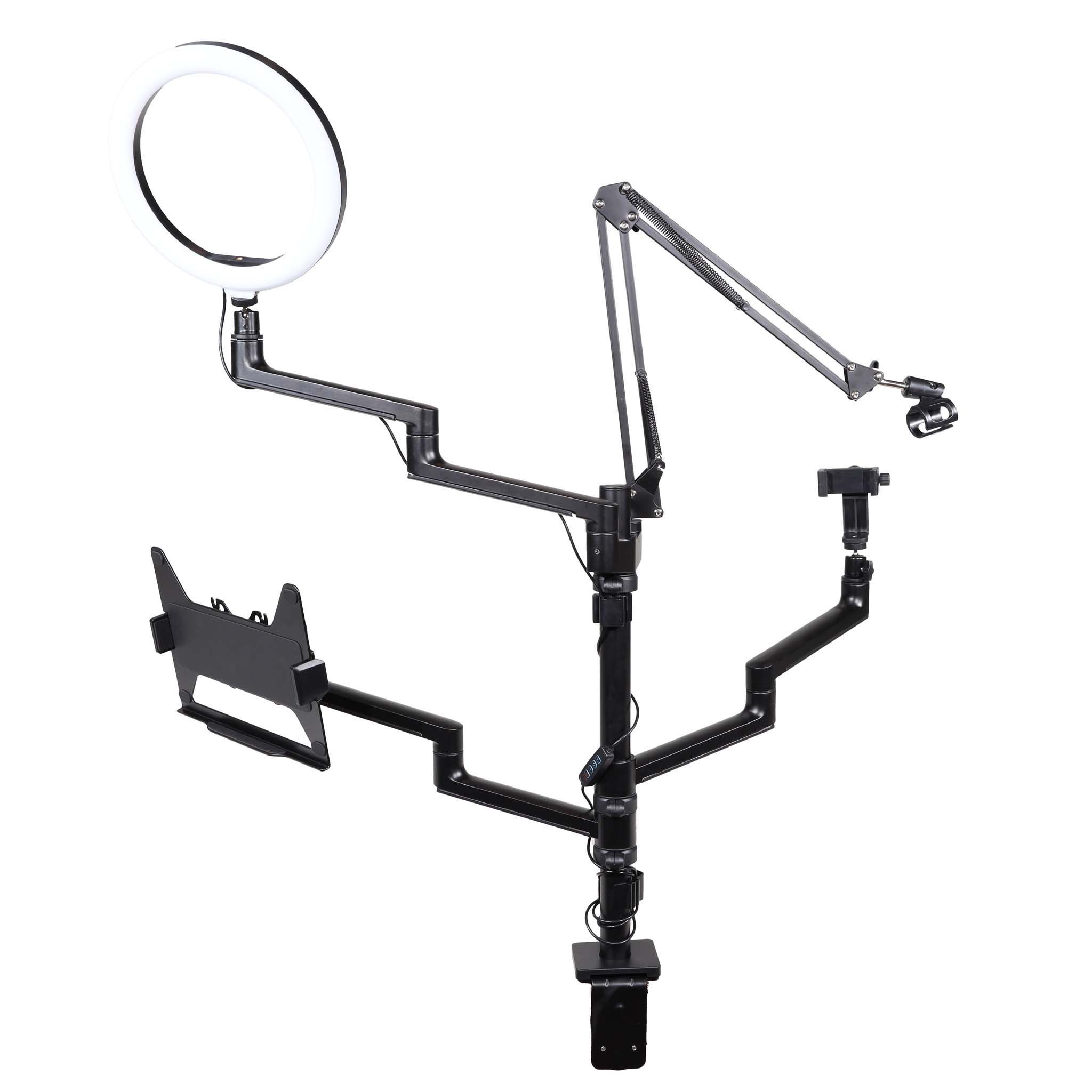 Wiltec 4in1 Tischstativ Kamera Stativ mit Tischklemme Ringlicht Streaming Setup