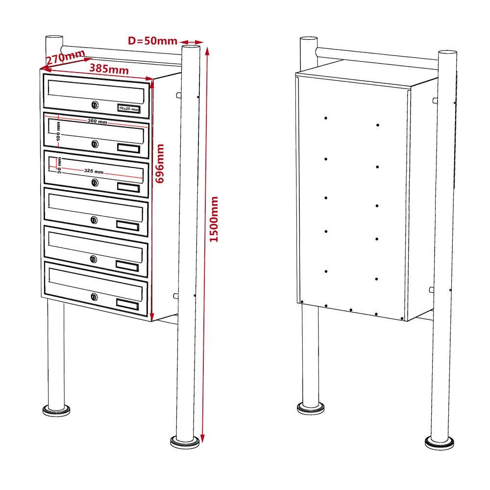 Wiltec 6er Briefkastenanlage weiß 270x513x1500mm Standbriefkasten Briefkasten