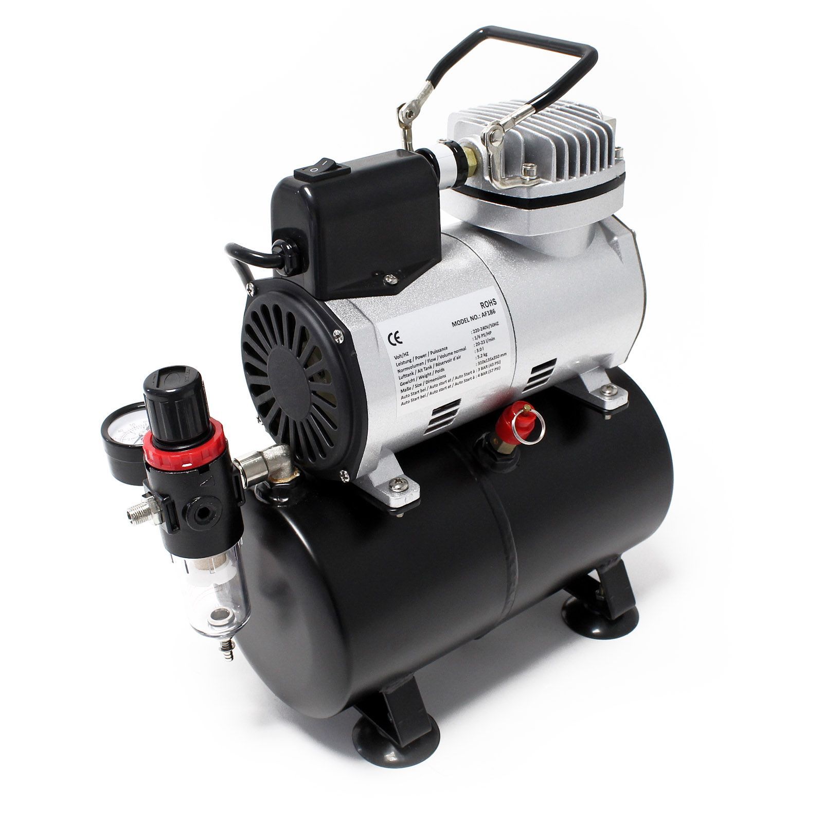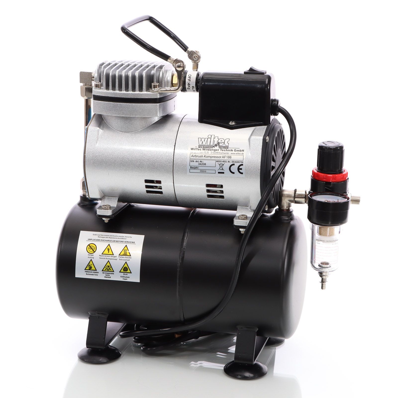 Wiltec Airbrush Kompressor AF186 4bar mit Lufttank 2 Zylinder Kolben Nailart