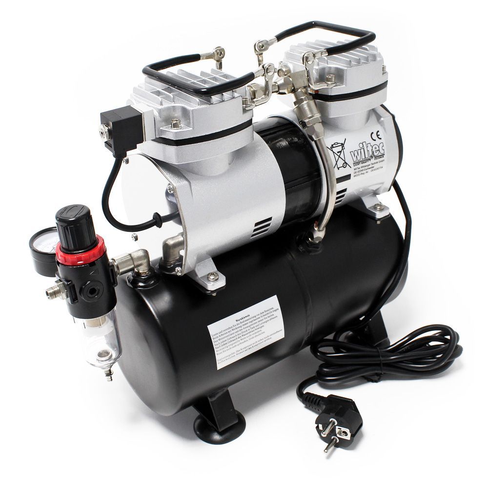 Wiltec Airbrush Kompressor AS196 6bar mit Lufttank 2 Zylinder Kolben Nailart