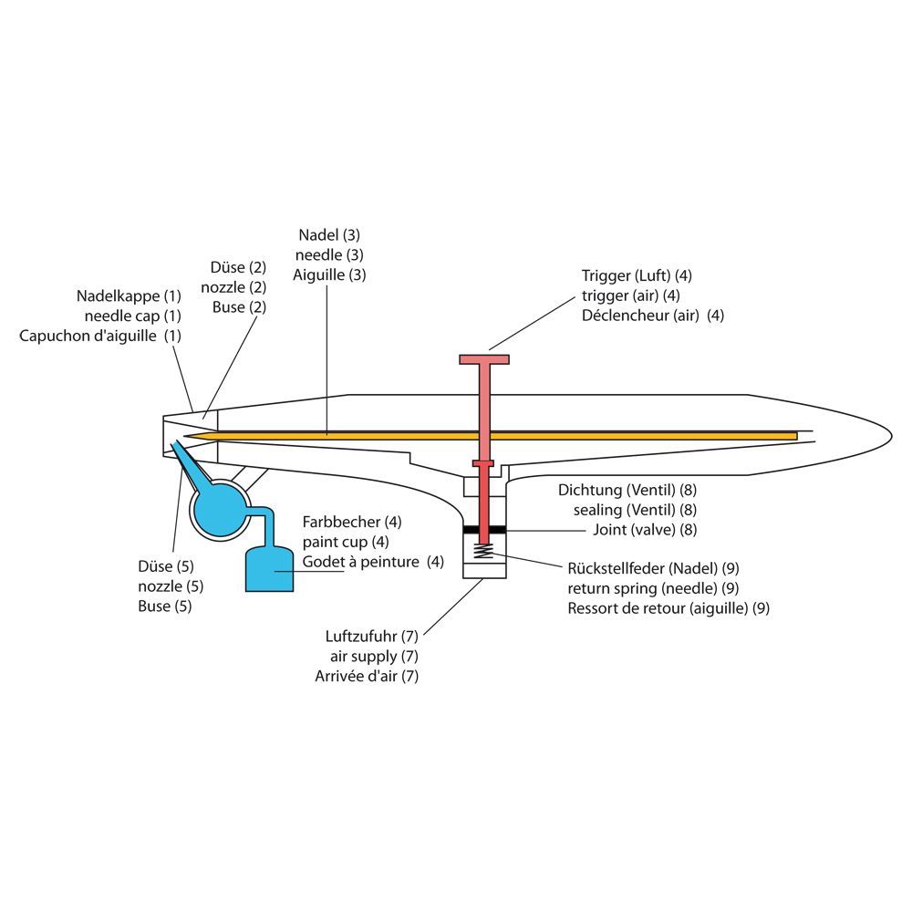 Wiltec Airbrush Pistole Typ 138 Single Action Spritzpistole Druckluft 0,8mm Düse
